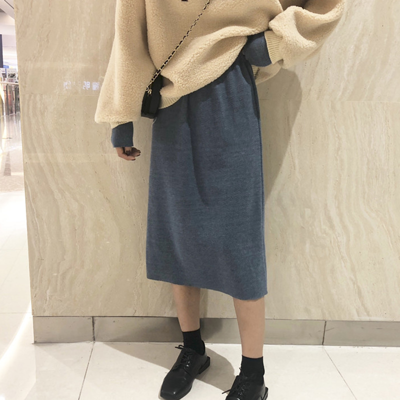 網紅兩件套冬裝新款女拼接羊羔毛衛衣外套高腰顯瘦半身裙子套裝