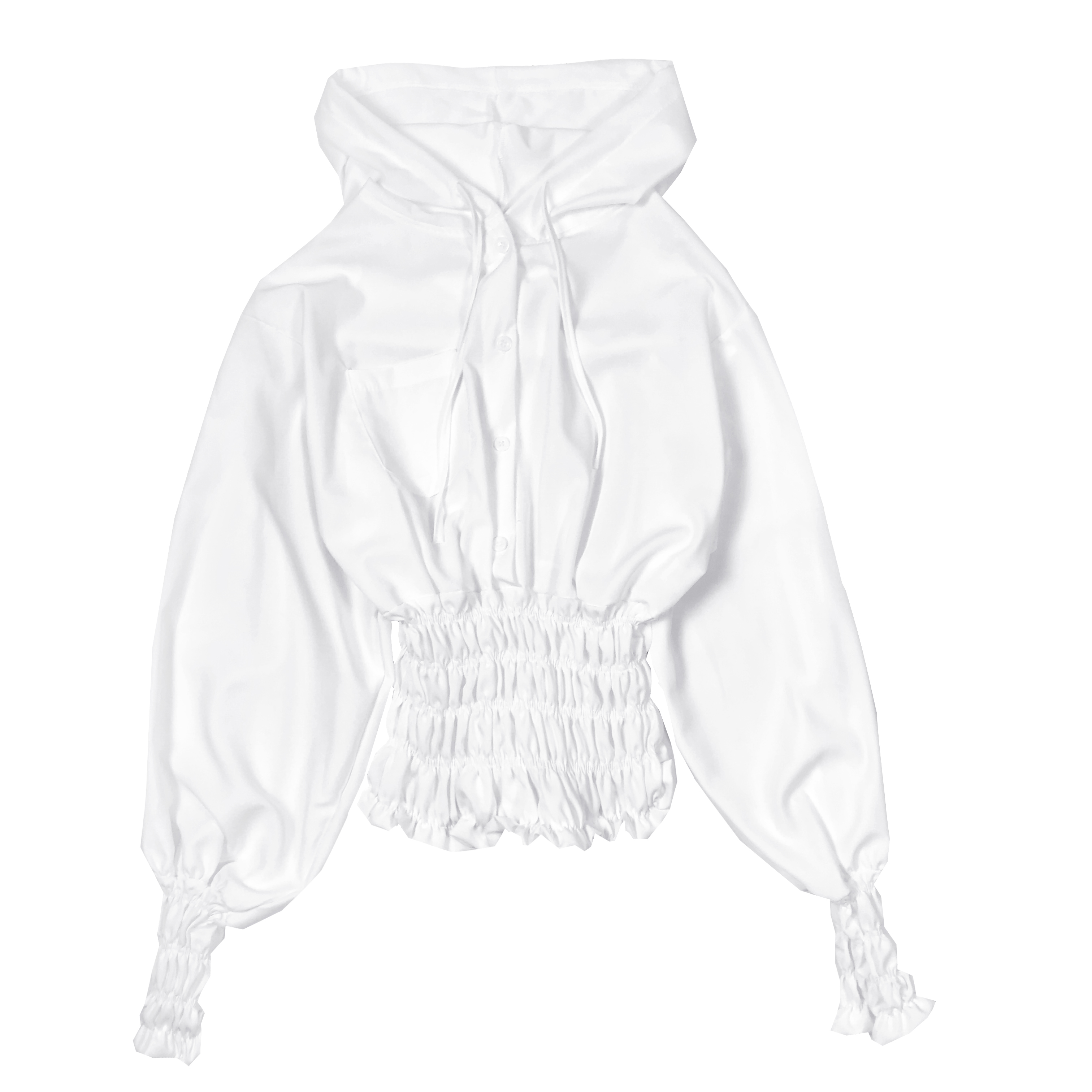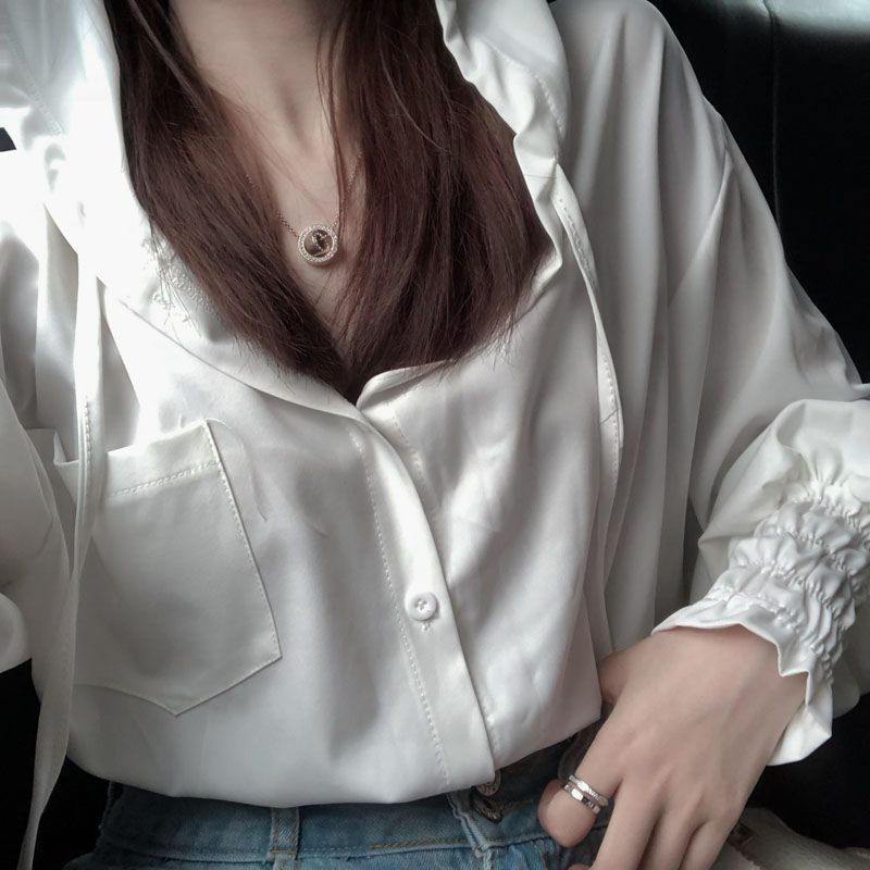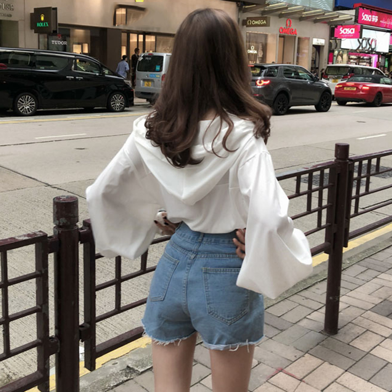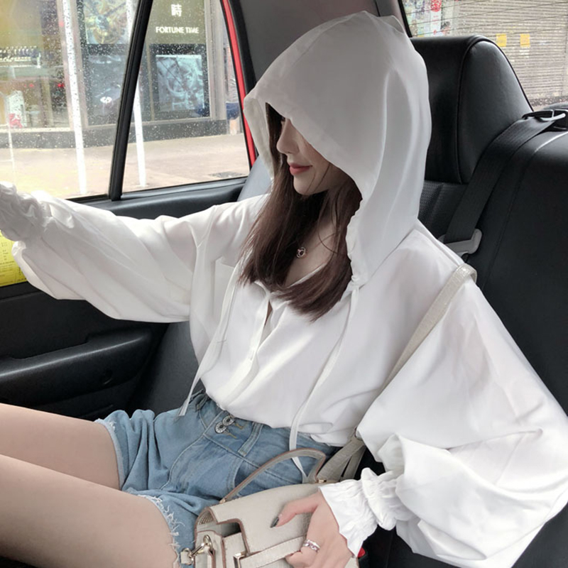 / 2018秋季新款韓范連帽雪紡襯衫女裝泡泡袖白襯衣學生寬松短款上衣