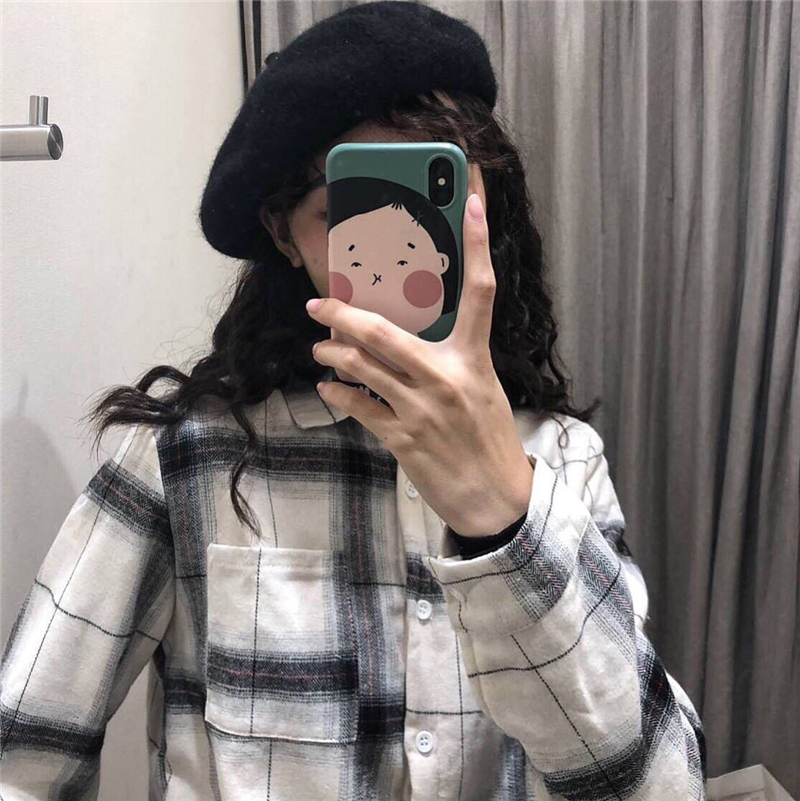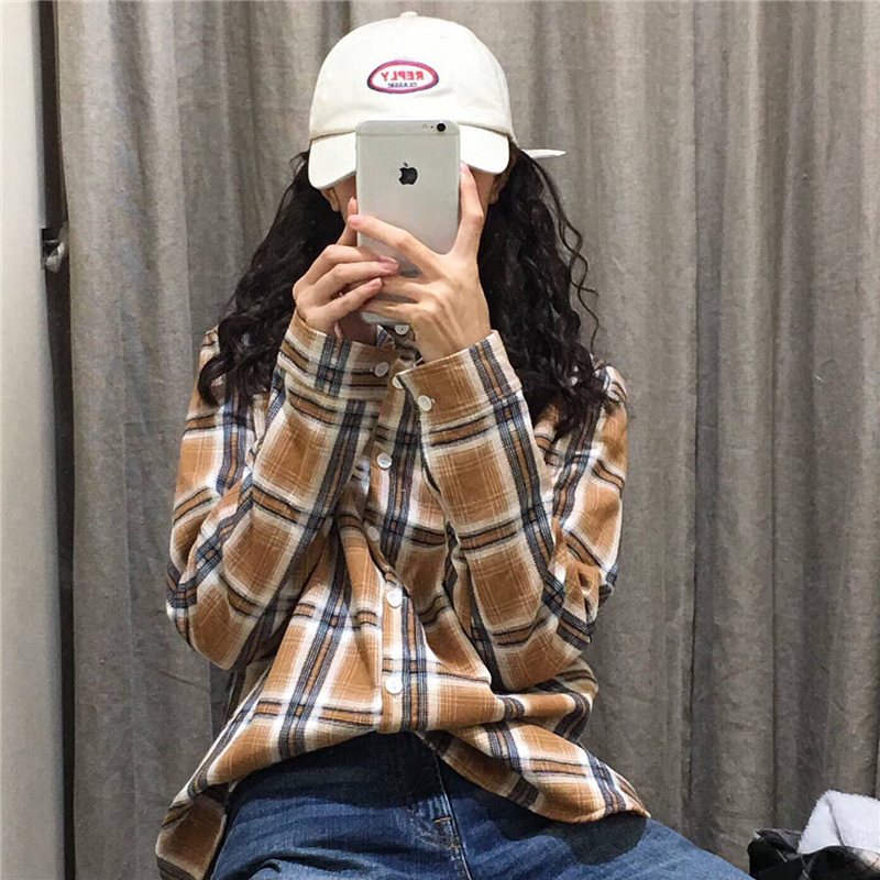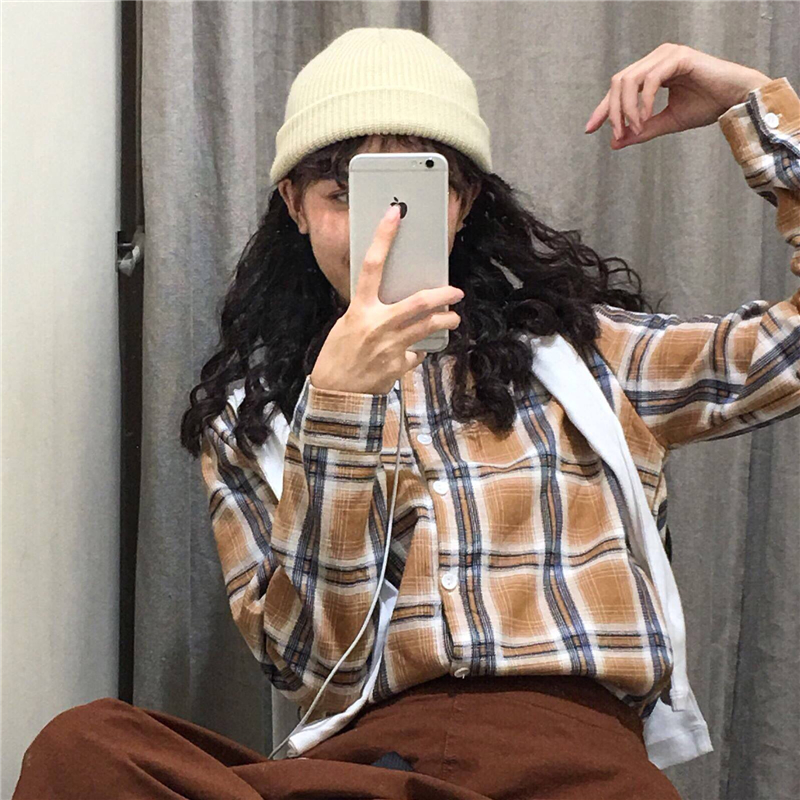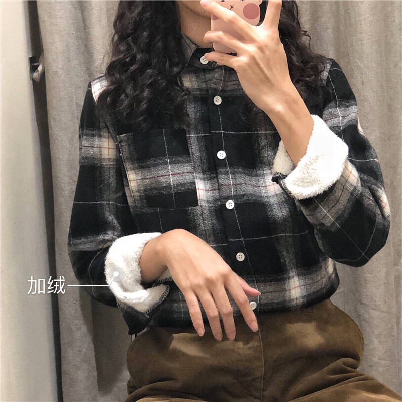 / 原宿風加絨襯衣女冬裝2018新款韓版學生寬松休閑撞色格子襯衫外套