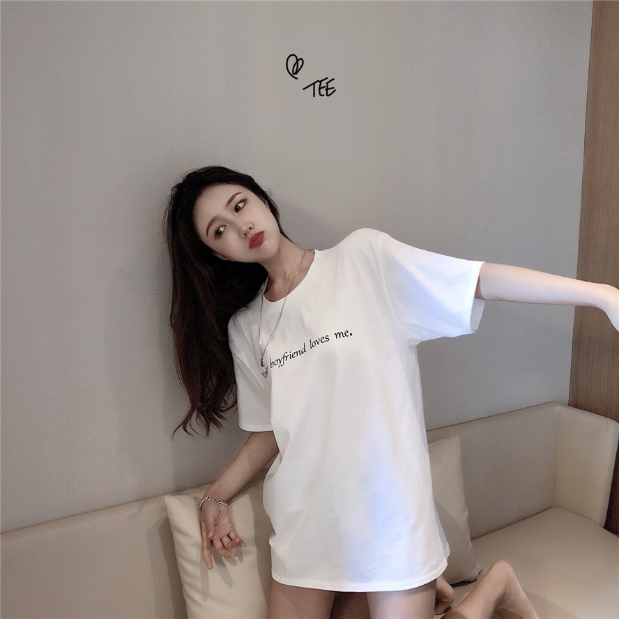 復古韓國chic男朋友風寬松顯瘦字母印花百搭短袖2018新款圓領T恤