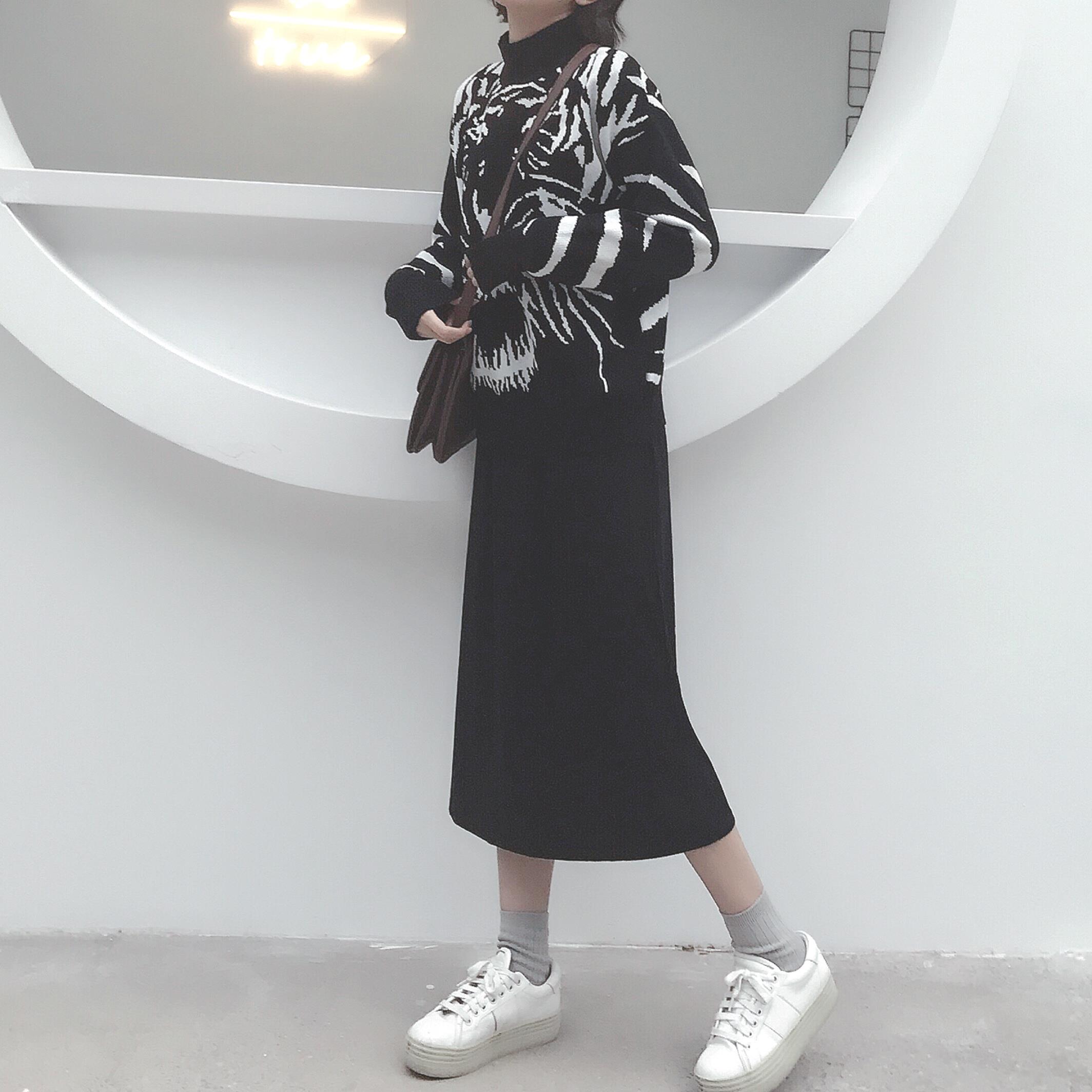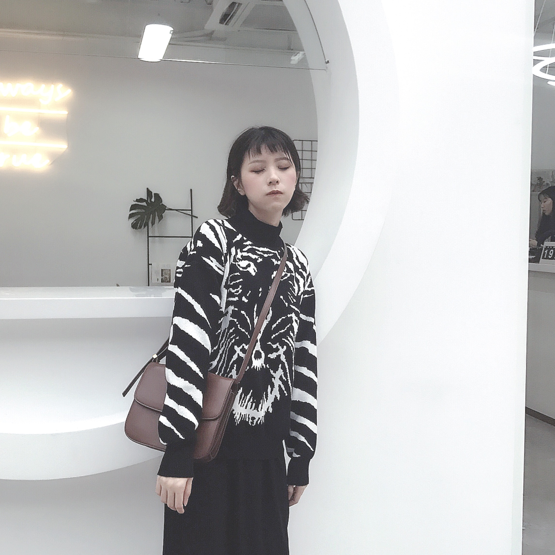 / 復古港風chic早秋針織衫個性虎頭半高領虎紋百搭寬松長袖毛衣女潮