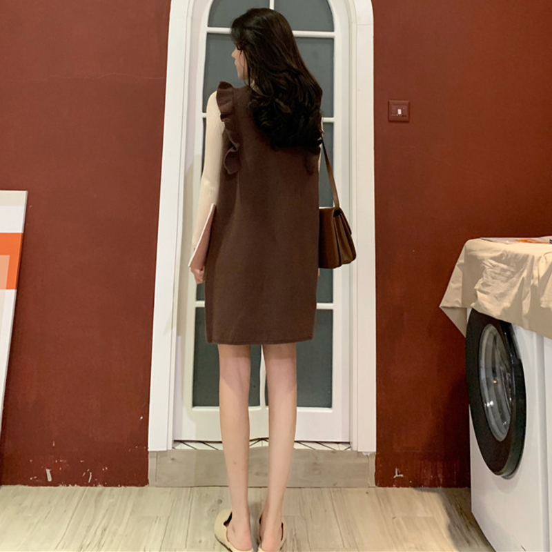 / 氣質女神兩件套秋冬裝新款中長款荷葉邊背心裙修身高領打底針織衫