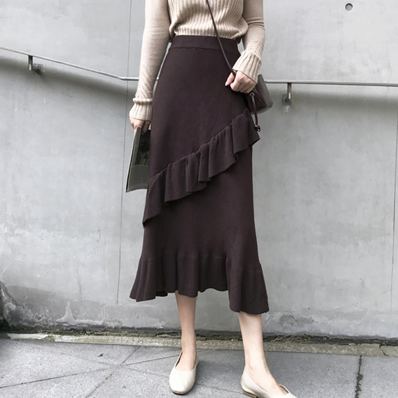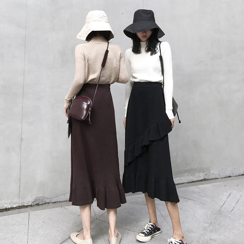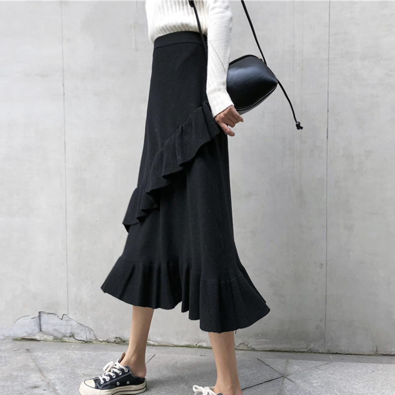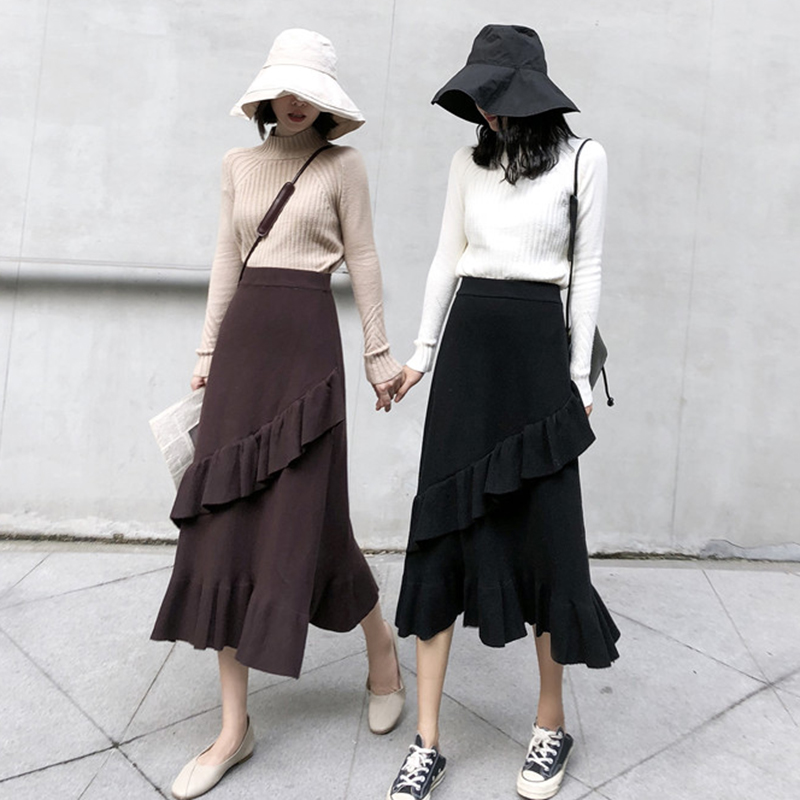 / 秋裝女2018新款港味學生高腰中長裙時尚休閑荷葉邊半身裙a字裙子