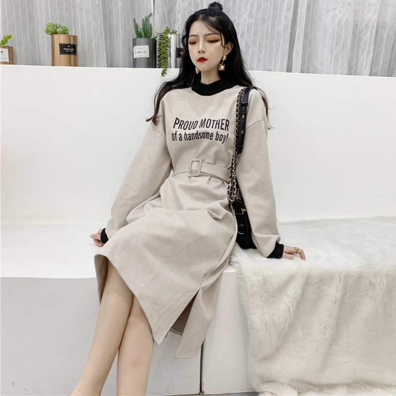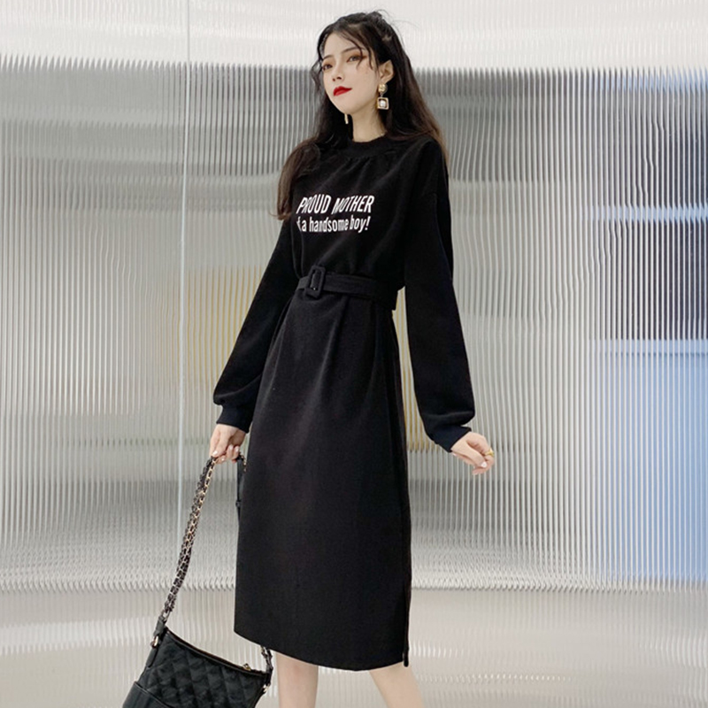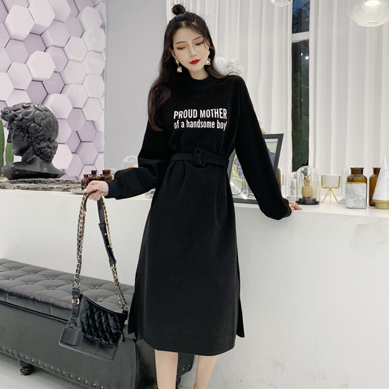 / 復古風收腰顯瘦毛呢連衣裙子女秋冬裝新款開叉氣質長袖egg中長裙