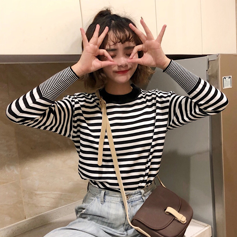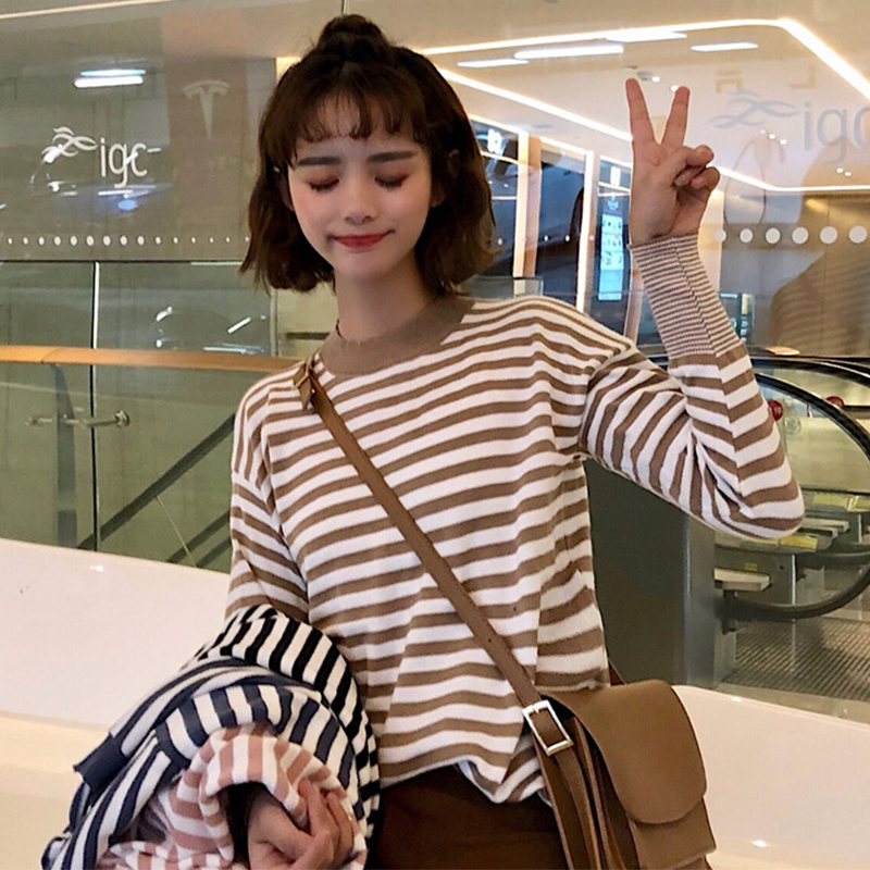 原宿風套頭條紋針織衫女秋冬裝2018新款韓版學生長袖外套打底毛衣