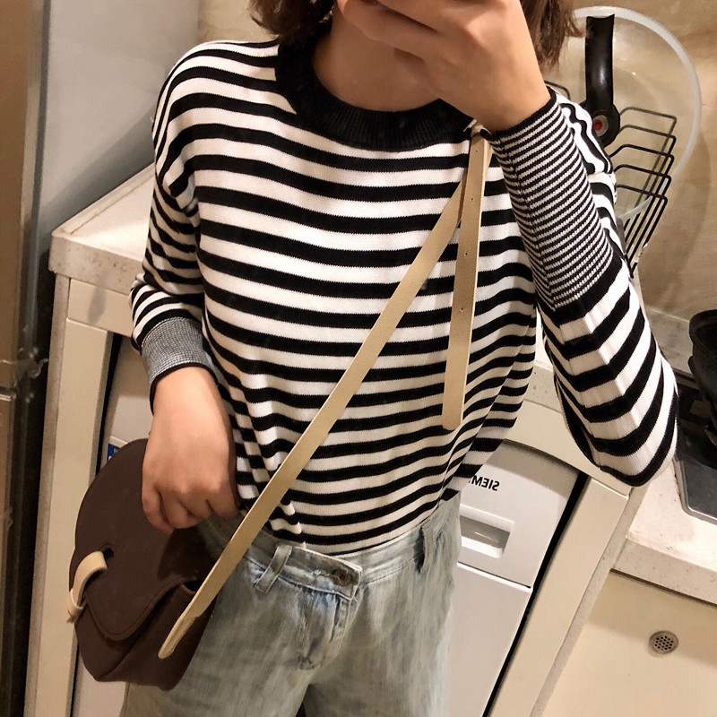 / 原宿風套頭條紋針織衫女秋冬裝2018新款韓版學生長袖外套打底毛衣