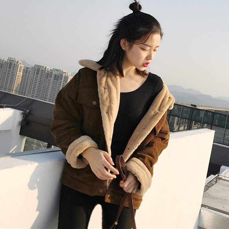復古燈芯絨外套秋冬2018新款女裝港味寬松長袖上衣休閑簡約夾克潮