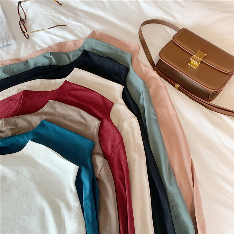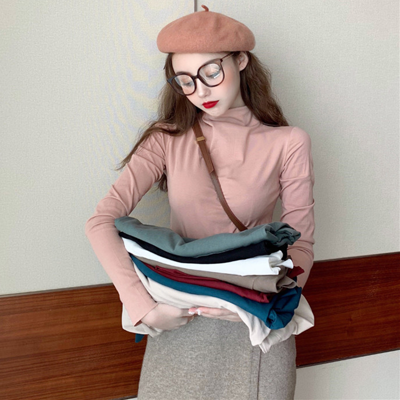 / 內搭半高領打底衫女修身顯瘦長袖T恤上衣學生秋裝女新款體恤衣服