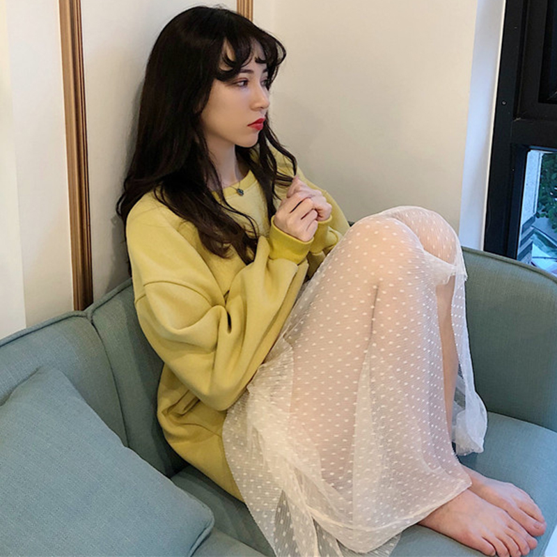 / 時尚拼接假兩件寬松連衣裙子女秋冬裝新款學生法式長袖egg桔梗裙