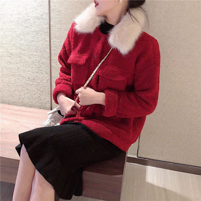 / 時尚套裝女2018秋冬新款大毛領羊羔毛外套中長款修身顯瘦打底裙子