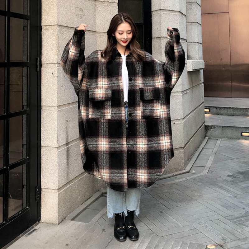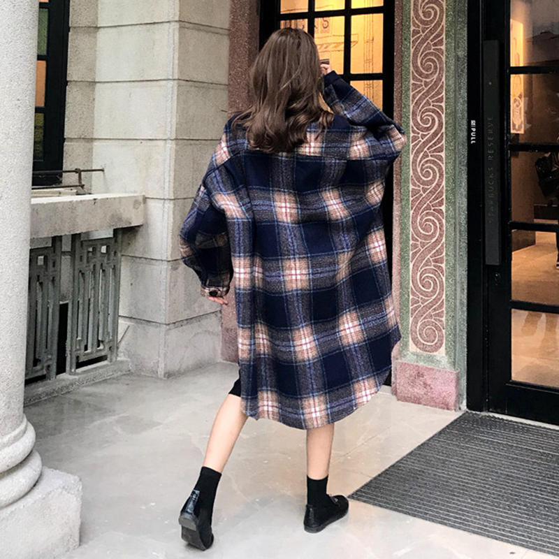 / chic風港味復古格子長袖襯衫女秋冬裝2018新款時尚百搭中長款外套
