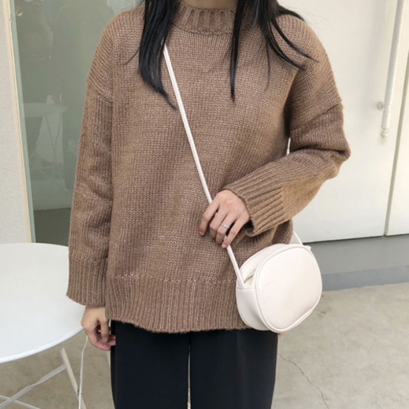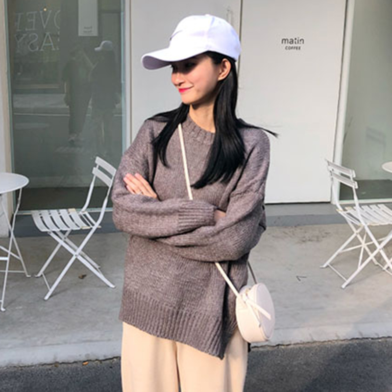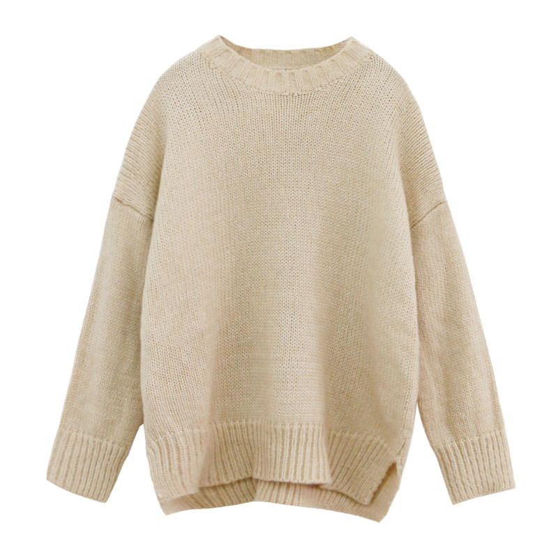 純色慵懶寬松毛衣女秋冬裝2018新款學生針織外套復古長袖圓領上衣
