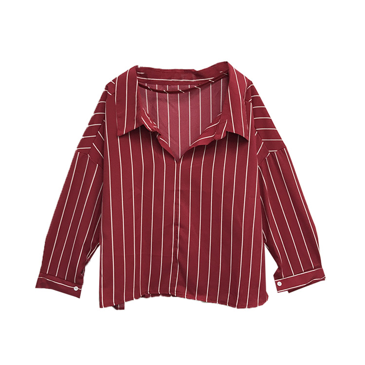 港風顯瘦V領條紋時尚簡約氣質百搭洋氣上衣薄款襯衫女夏2018新款