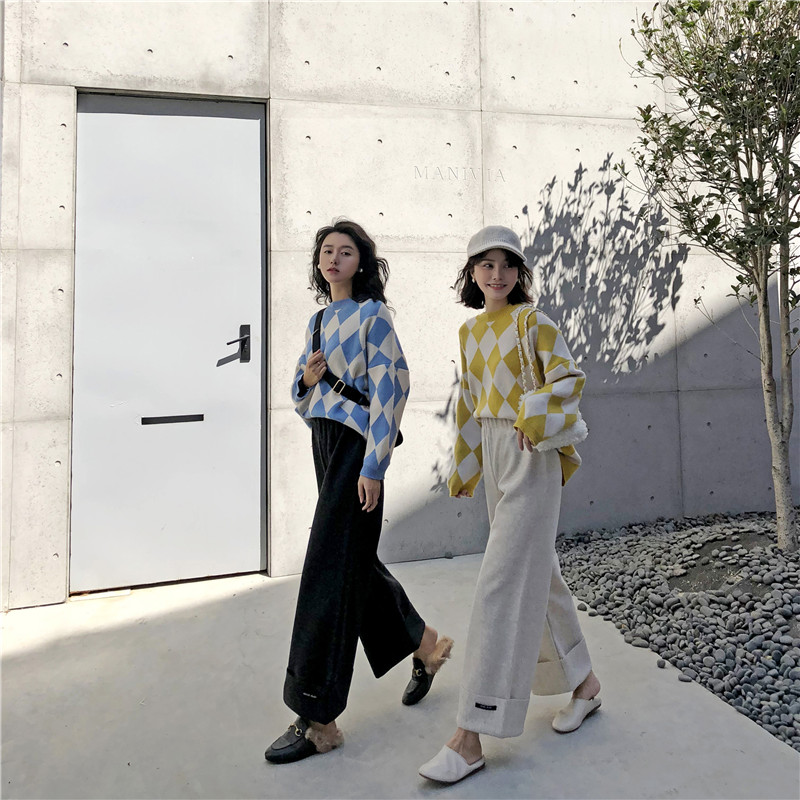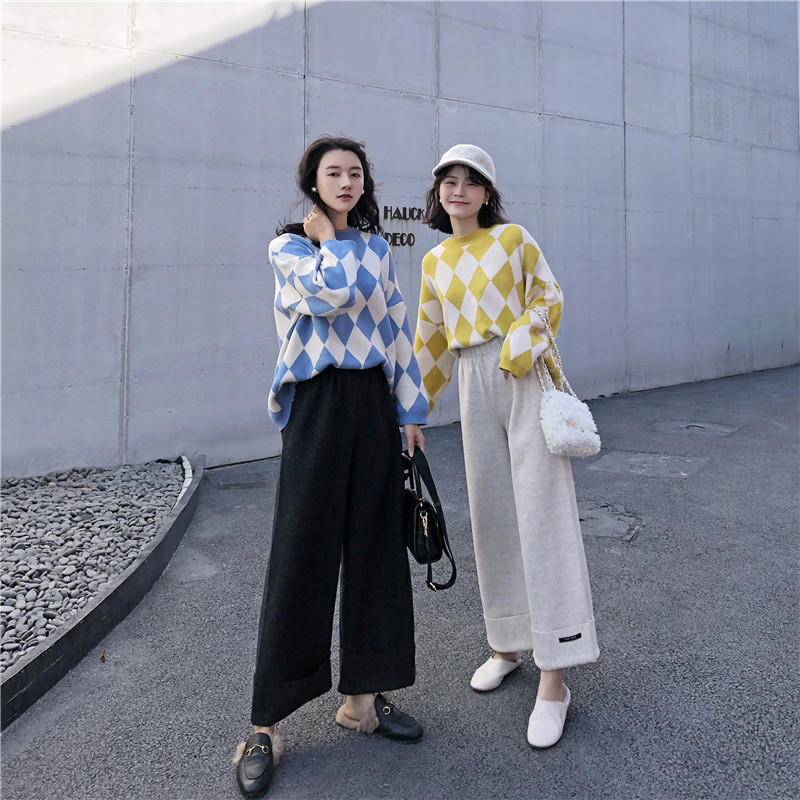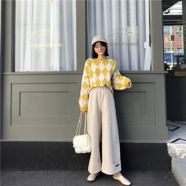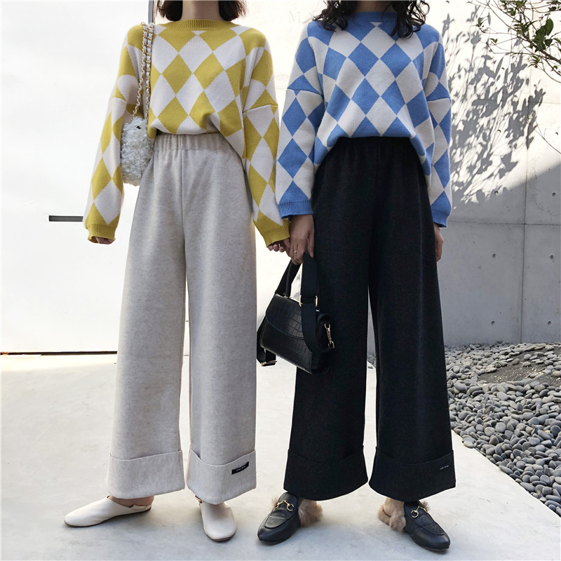 2018秋冬新款韓版毛呢闊腿褲墜感高腰直筒褲百搭寬松顯瘦休閑褲女