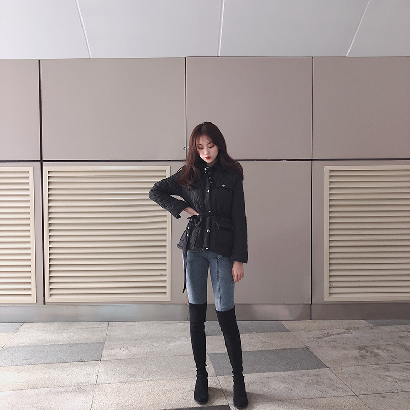 chic韓版系帶收腰顯瘦棉衣外套冬季女2018新款百搭修身長袖面包服