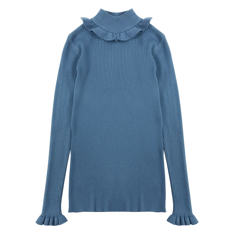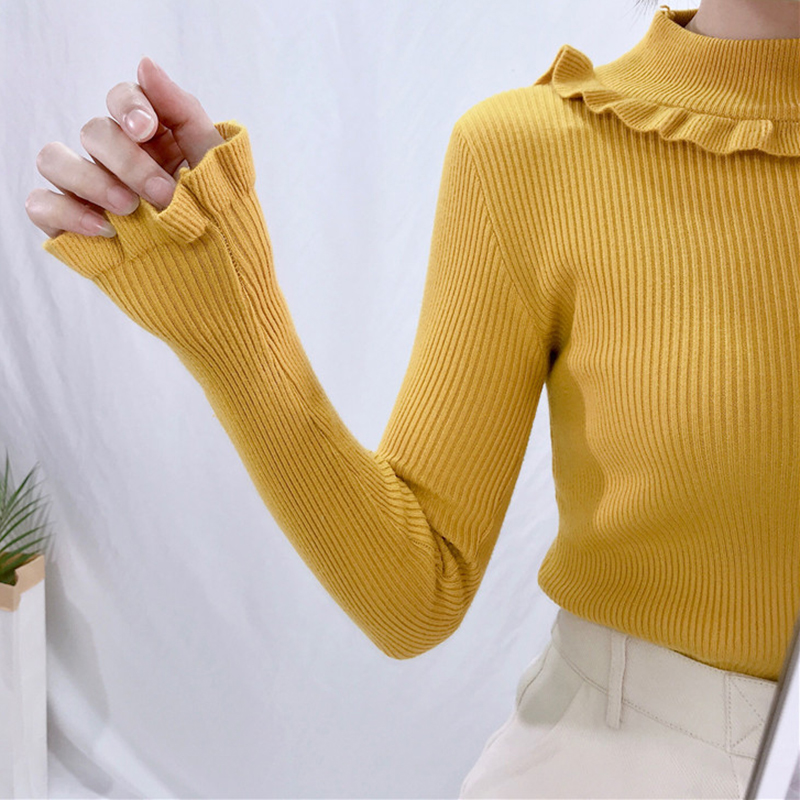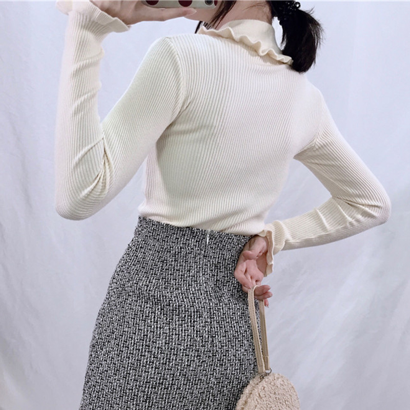 打底上衣女裝秋冬新款木耳小高領長袖針織衫純色修身短款套頭毛衣