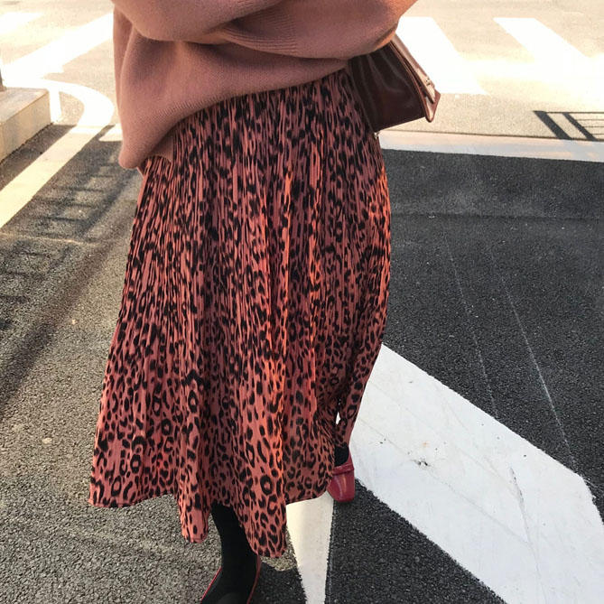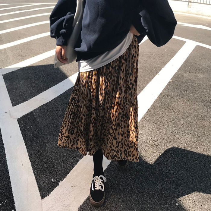 / 韓版chic復古裙子女秋冬2018新款豹紋高腰百褶裙半身裙中長裙~2色