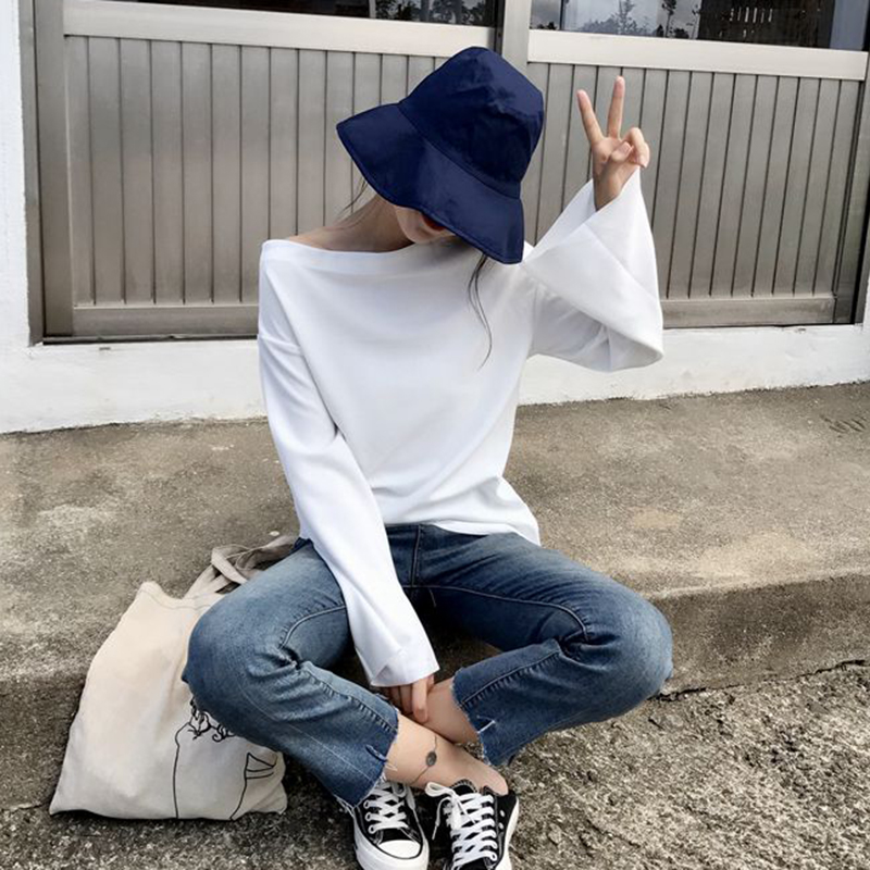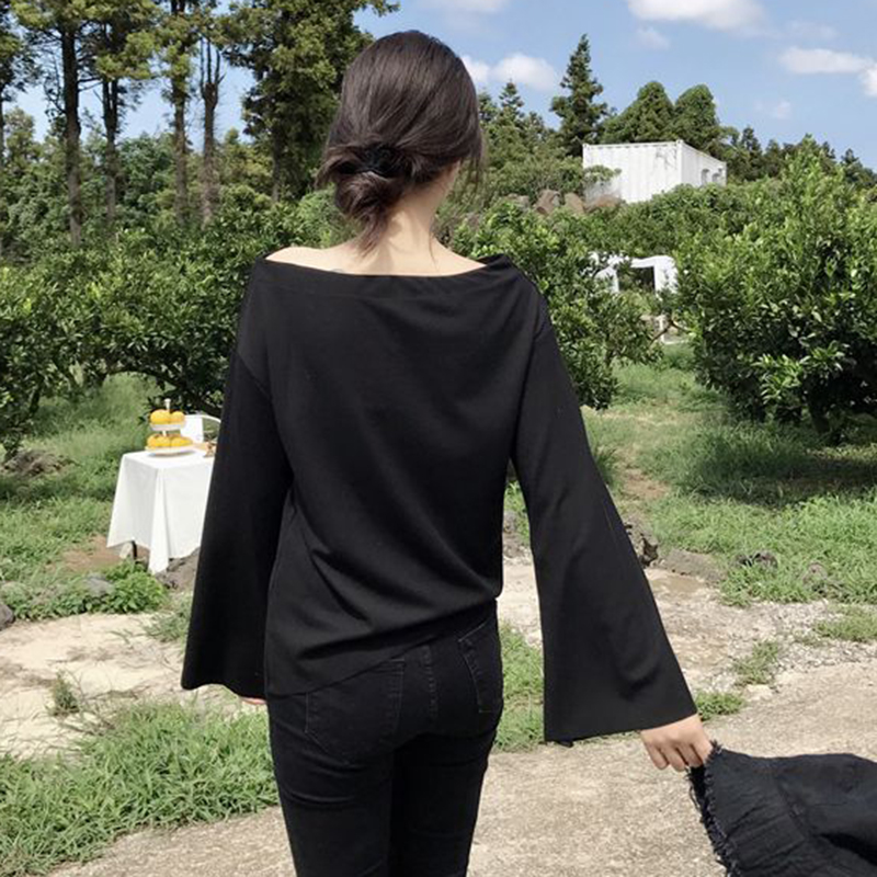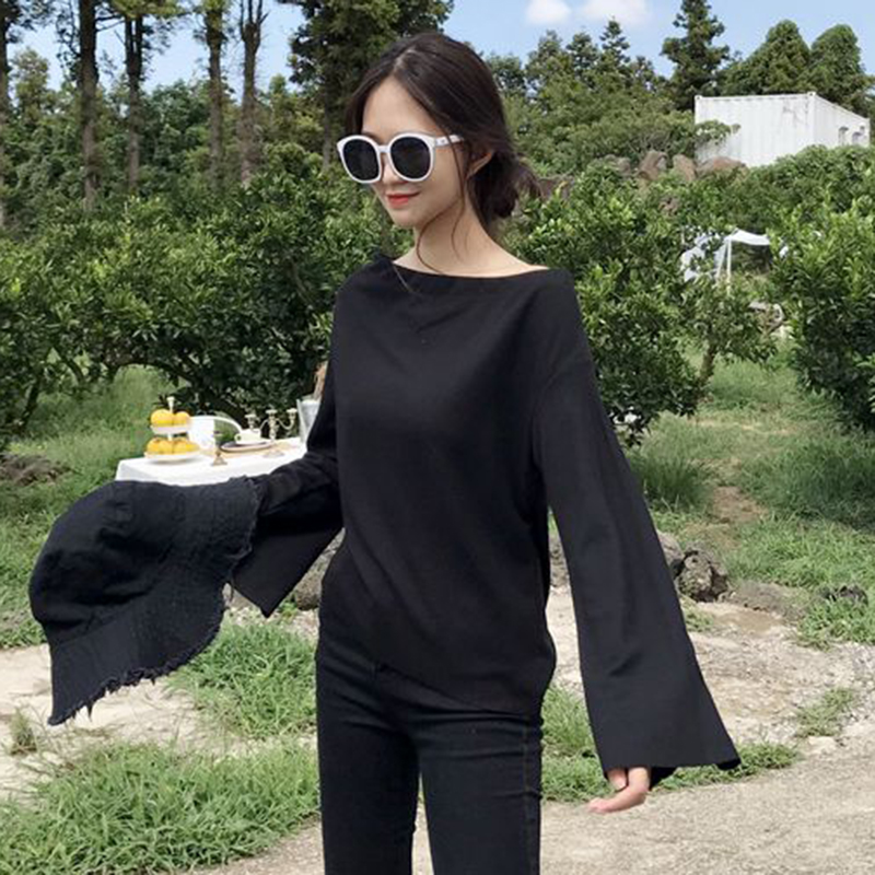 / 套頭喇叭長袖打底衫秋裝女2018新款韓版純色休閑修身顯瘦T恤上衣