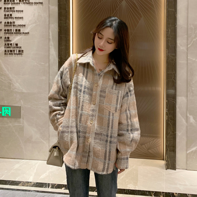 復古溫柔慵懶風隨意暖色系百搭寬松中長款毛呢外套女韓版呢子大衣