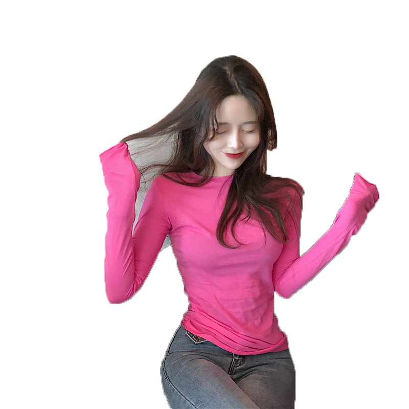 初秋新款女上衣韓版時尚chic基礎款百搭顯瘦高領純色打底衫t恤女