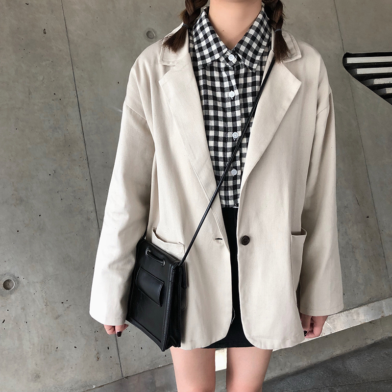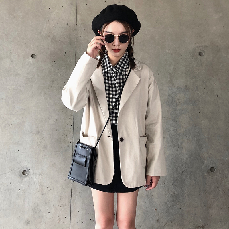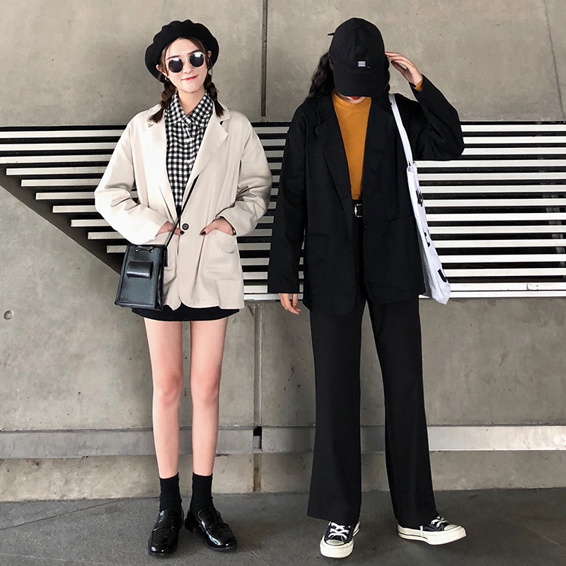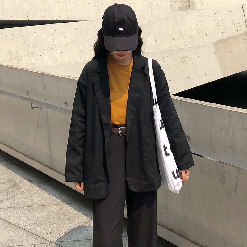 / 時尚小西裝外套女秋裝2018新款港風寬松中長款黑色長袖休閑西服潮
