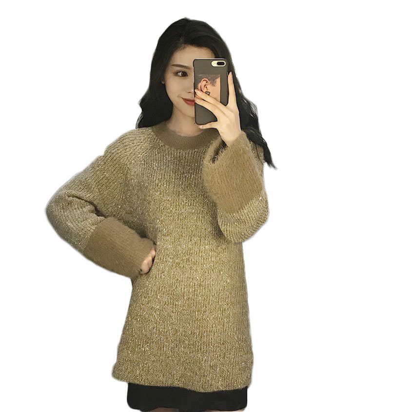 chic秋冬針織衫韓版慵懶百搭寬松質感顯瘦厚實毛衣中長款連衣裙女