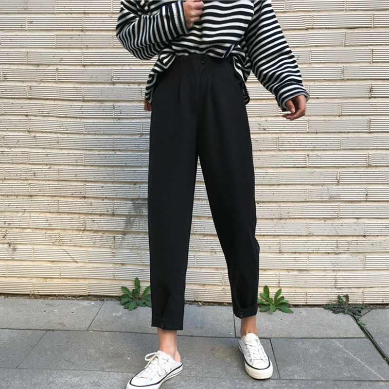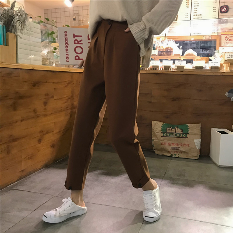 / 韓版時尚毛呢休閑褲女秋冬裝2018新款學生高腰顯瘦哈倫褲九分褲子
