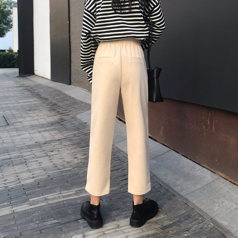 韓版時尚毛呢休閑褲女秋冬裝2018新款學生高腰顯瘦哈倫褲九分褲子