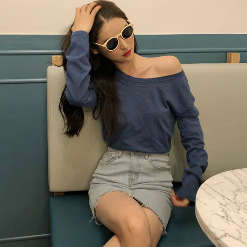 心機露背修身長袖打底衫女早秋新款韓版女裝學生黑色圓領T恤上衣