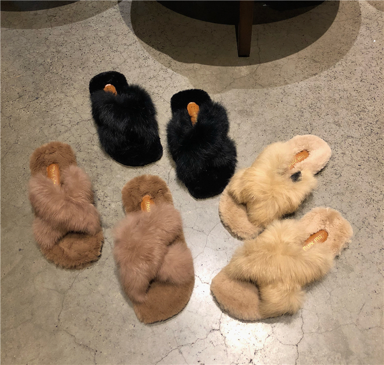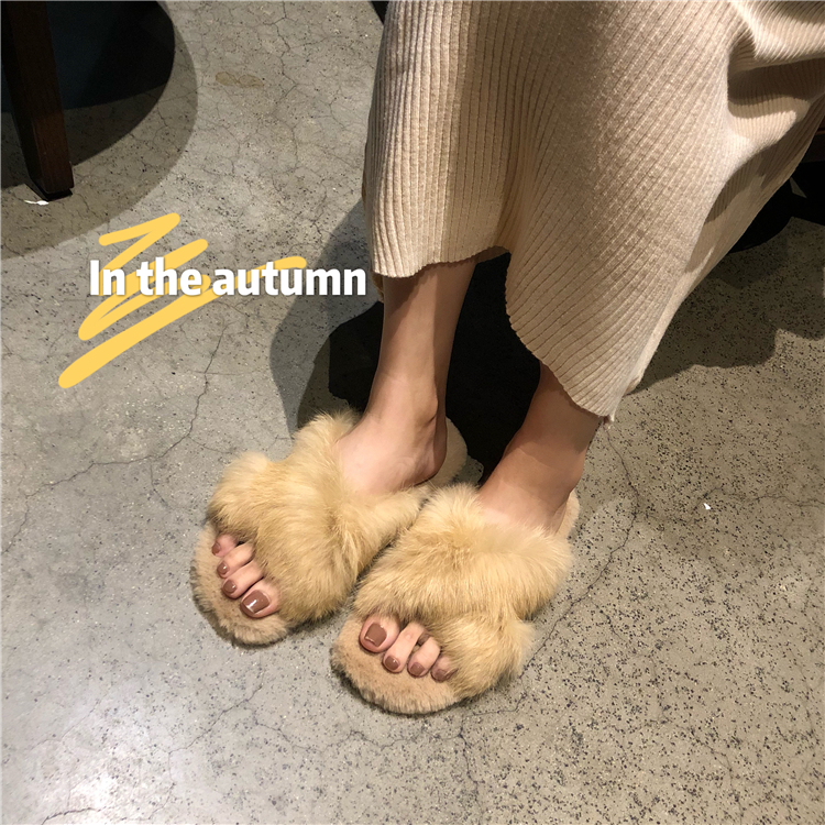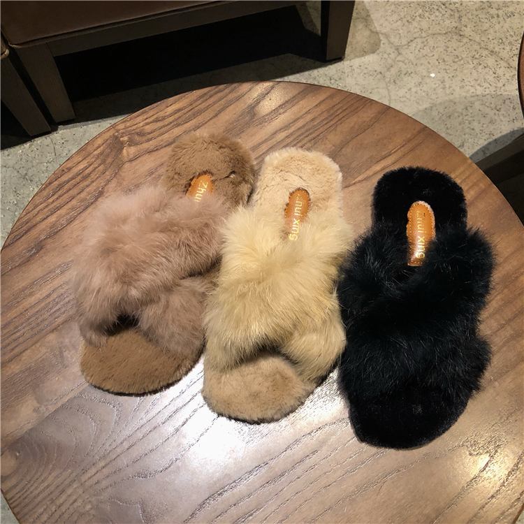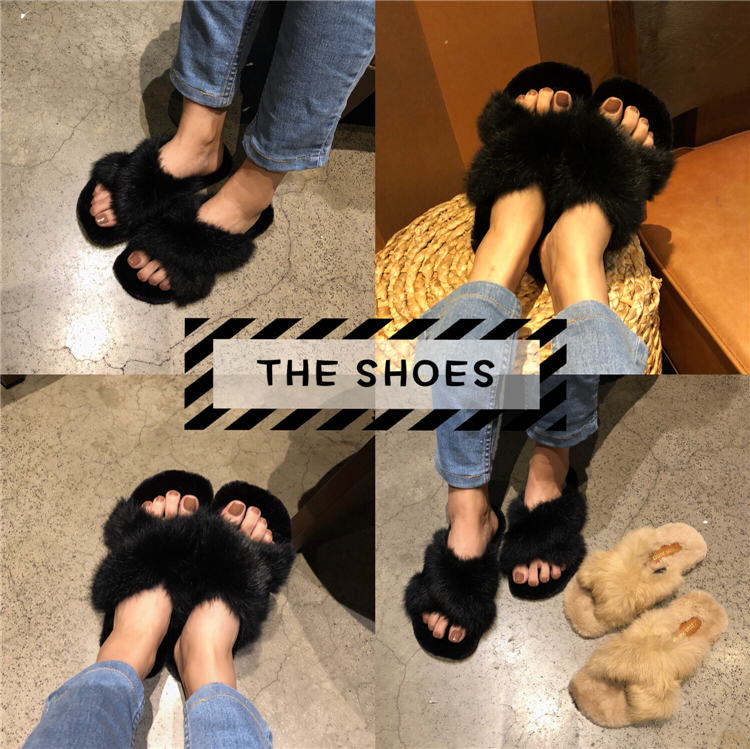 秋裝女2018新款時尚韓版百搭交叉毛茸茸外穿網紅毛毛拖鞋平底鞋潮