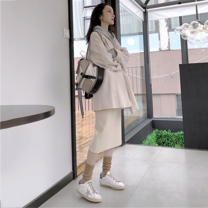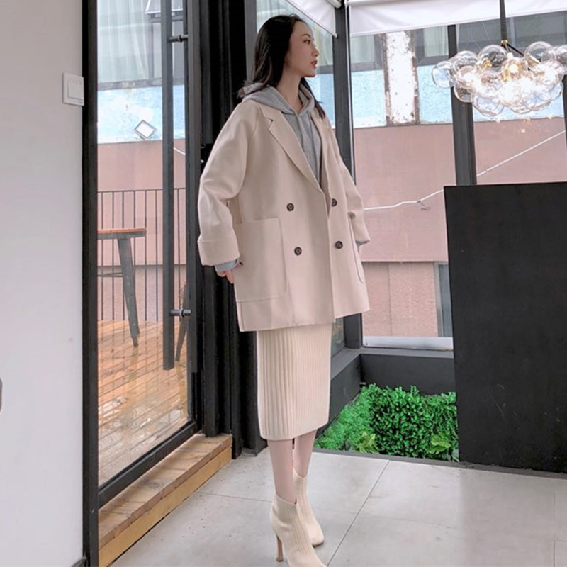 / 女神套裝秋冬新款2018流行毛呢外套加絨連帽衛衣高腰針織半身裙子