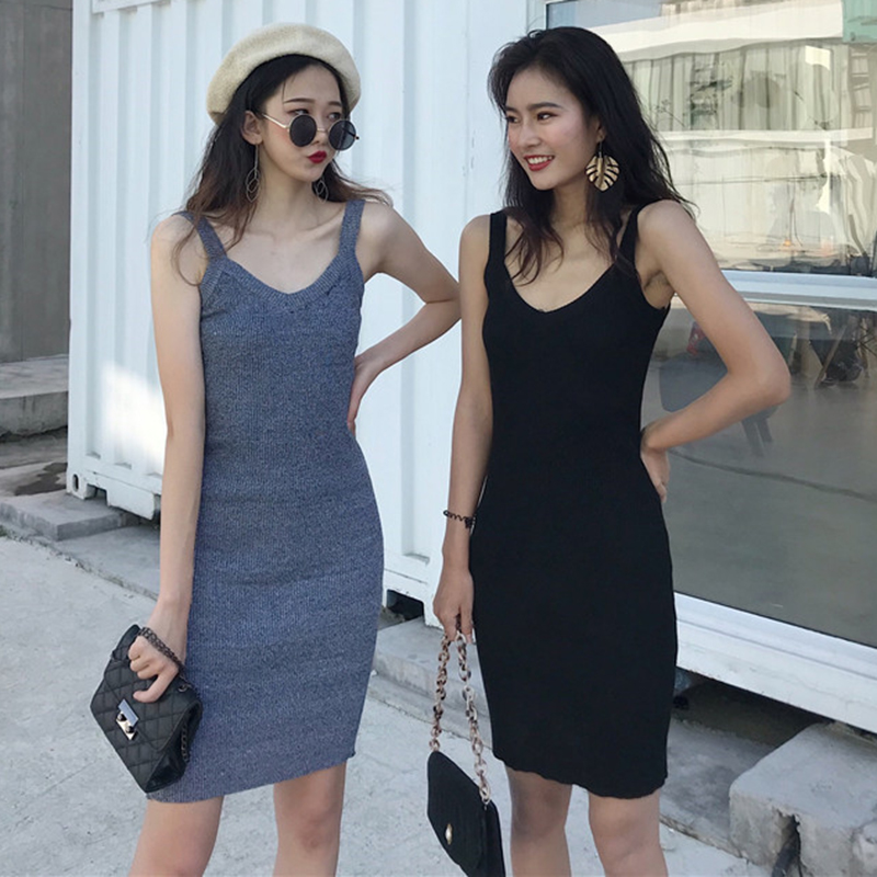 / 氣質中長款V領針織打底裙女秋冬裝2018新款韓版修身顯瘦連衣裙子