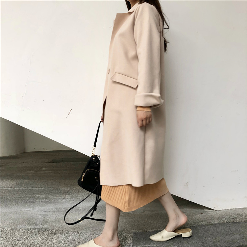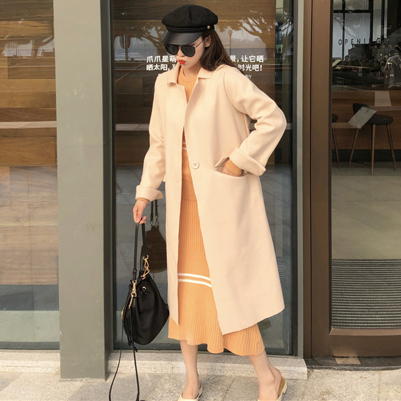 2018流行毛呢外套女秋冬裝新款赫本大衣復古風寬松中長款開衫上衣
