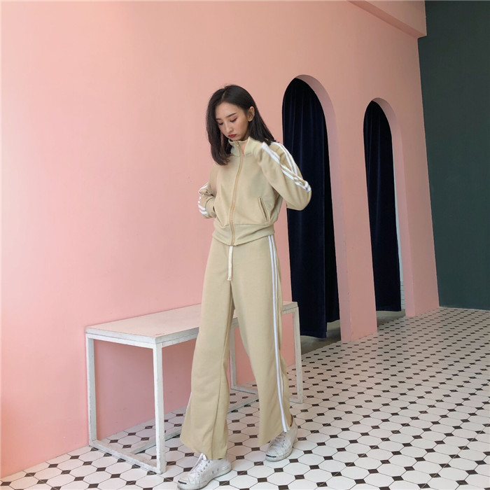 / 秋裝女2018新款套裝兩件套復古百搭短款外套+寬松休閑松緊長褲潮
