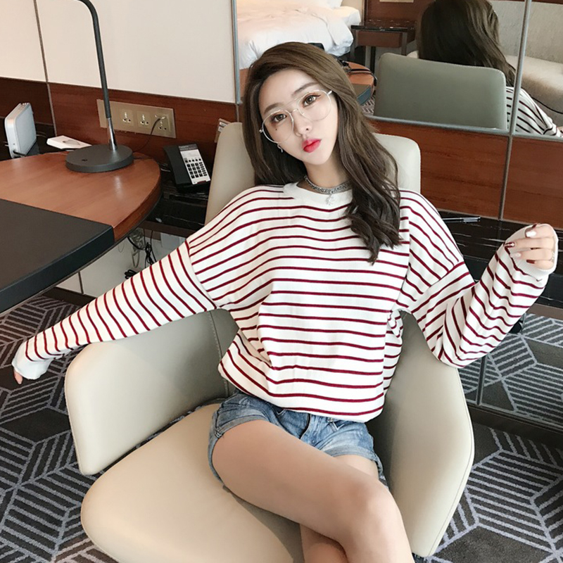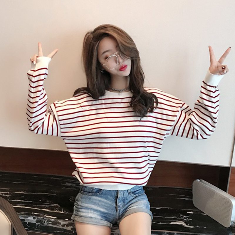 / 原宿風撞色條紋衛衣女秋冬裝2018新款韓版學生寬松百搭長袖外套潮