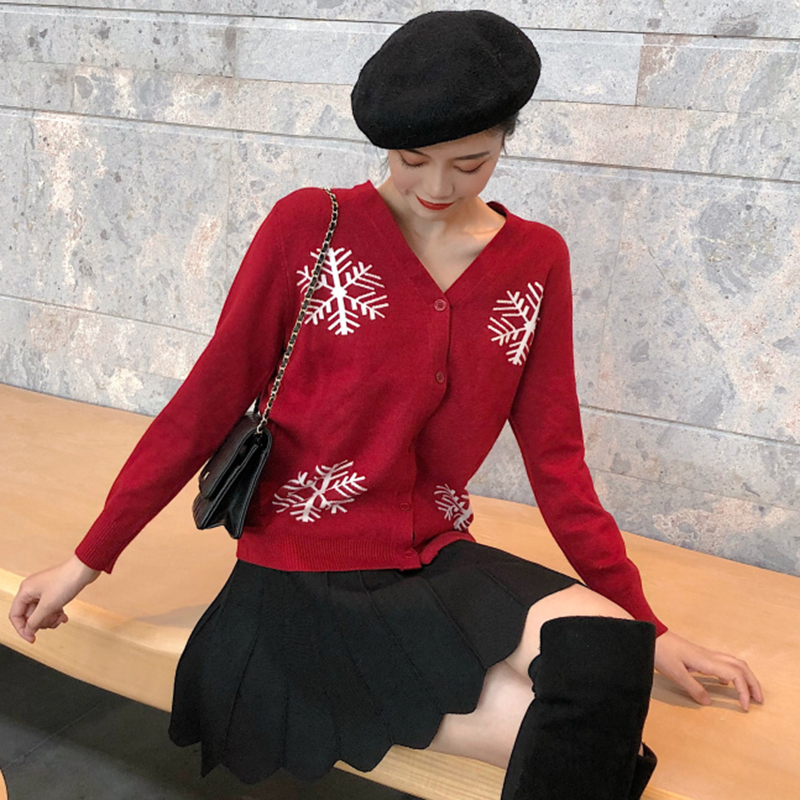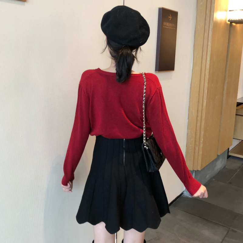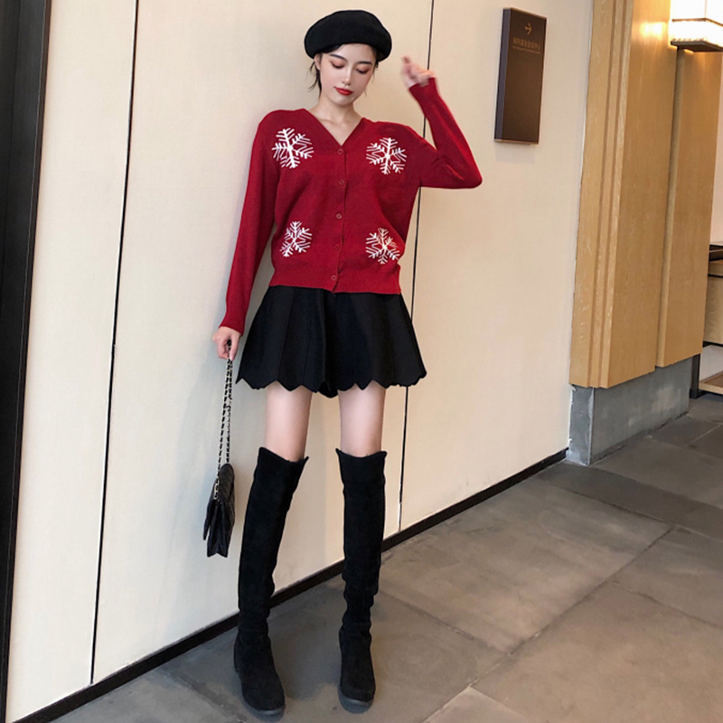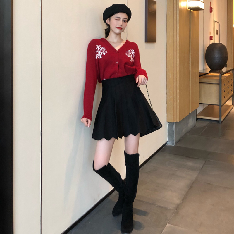 / 御姐套裝女秋冬新款時尚雪花修身針織衫外套高腰顯瘦A字半身裙子