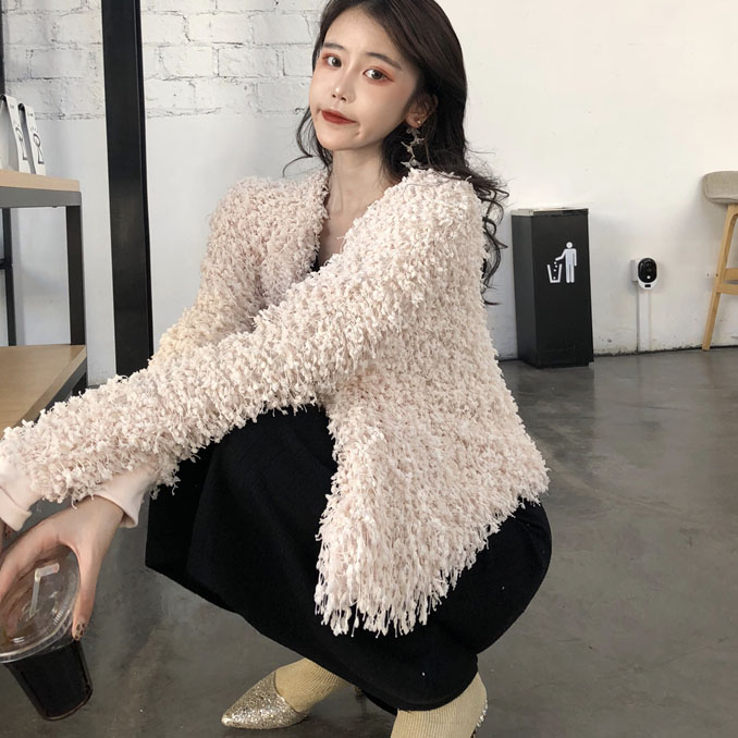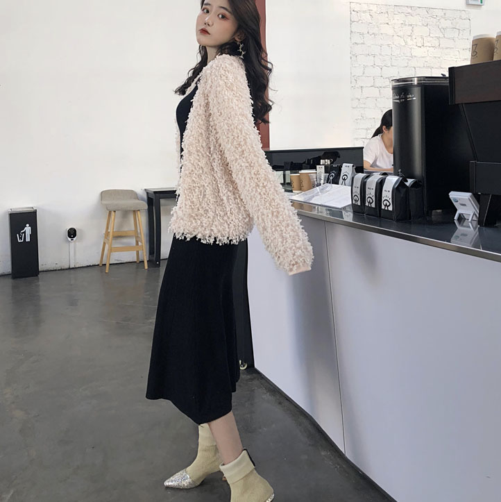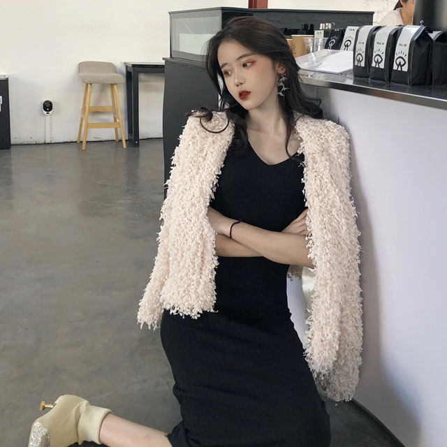 毛毛外套|黑色針織裙