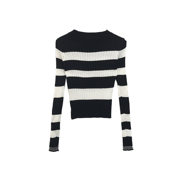 時尚韓風秋裝女2018新款氣質百搭圓領套頭條紋長袖針織衫打底衫潮