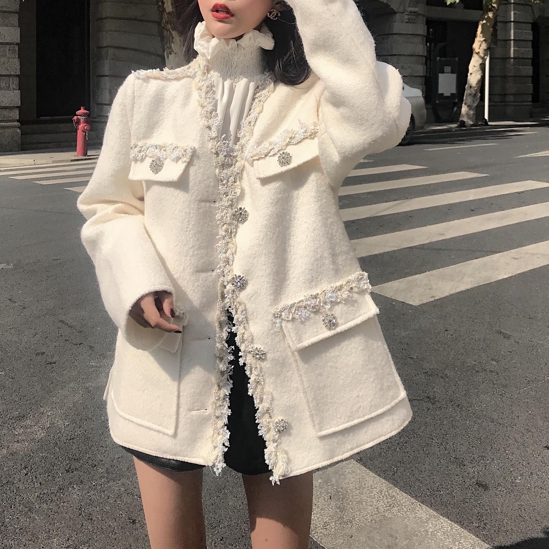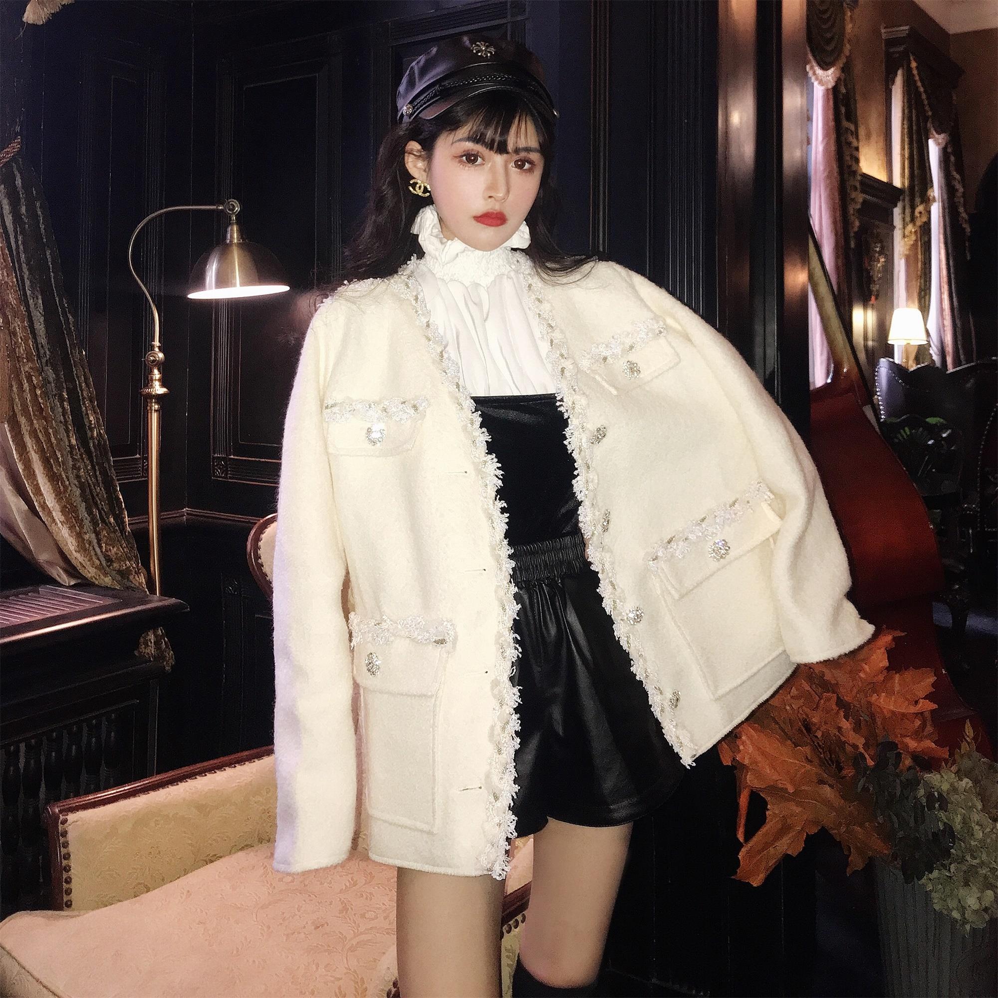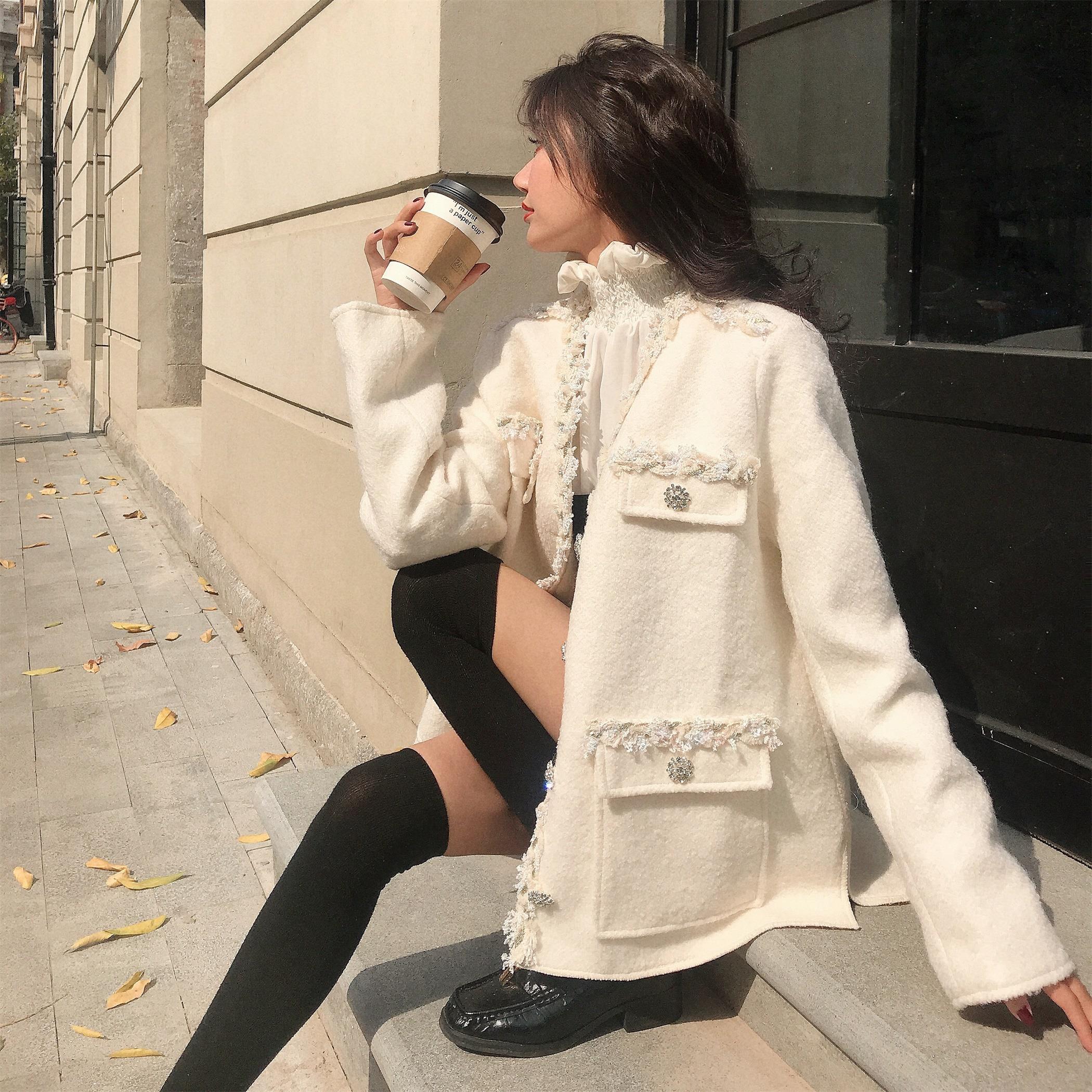 小香風毛呢外套女冬季大衣女新款韓版加厚短款寬松森系呢子上衣潮