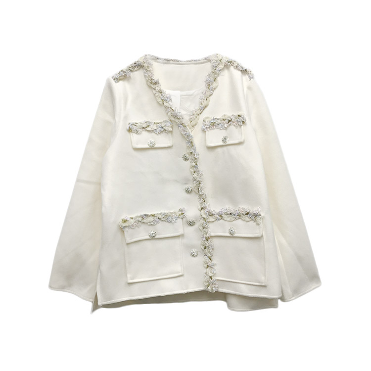 專門定制的鉆石花形扣裝飾點綴了整件衣服