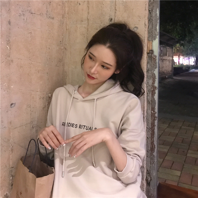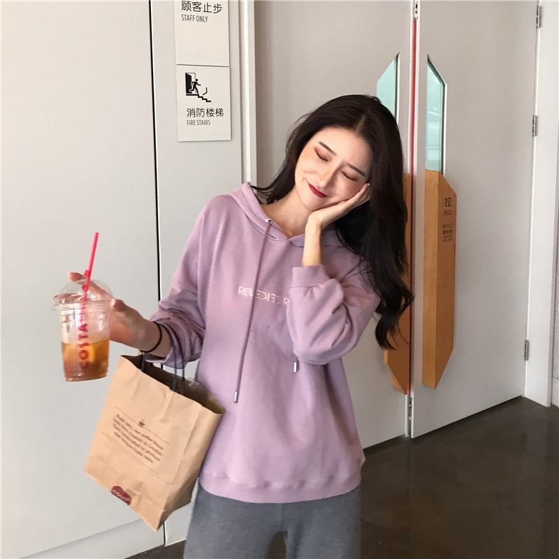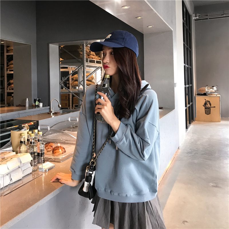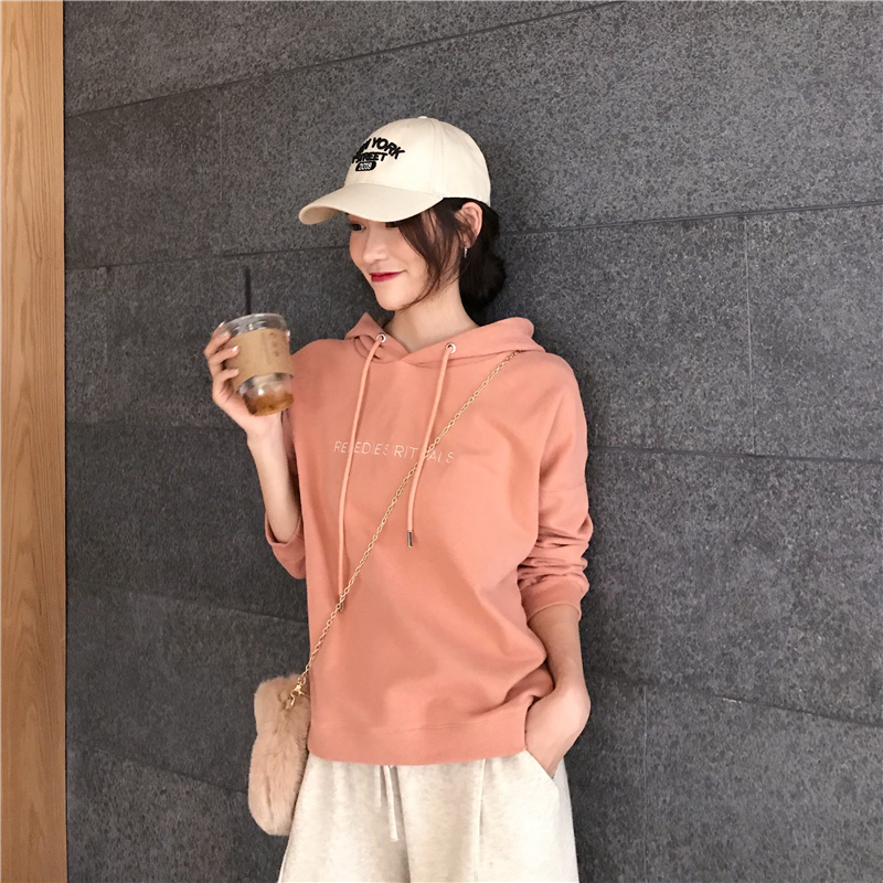 慵懶風字母刺繡套頭連帽衛衣女2018新款秋冬長袖學生韓版寬松外套