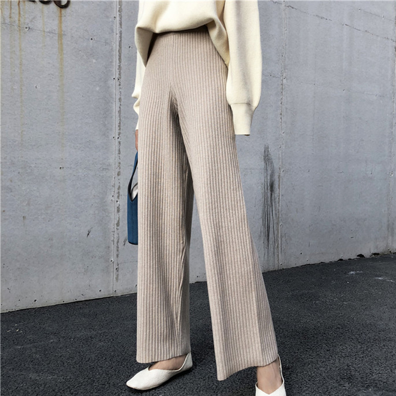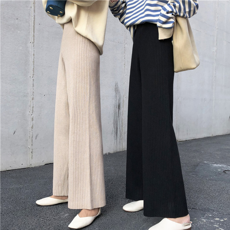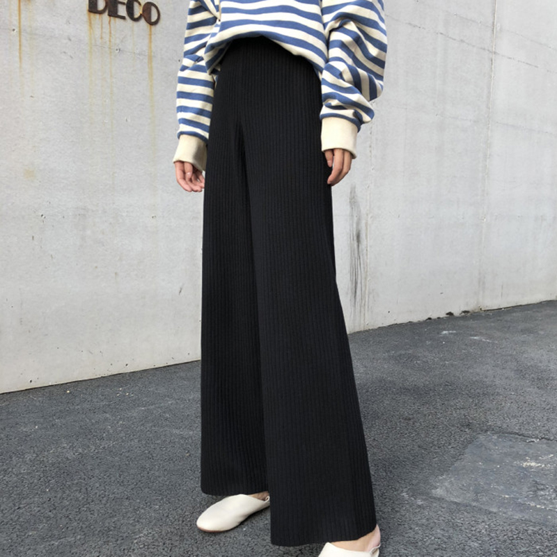 / 2018秋冬新款女裝墜感針織闊腿褲女學生寬松顯瘦黑色高腰休閑褲子