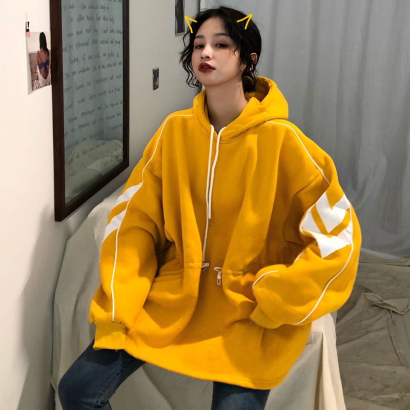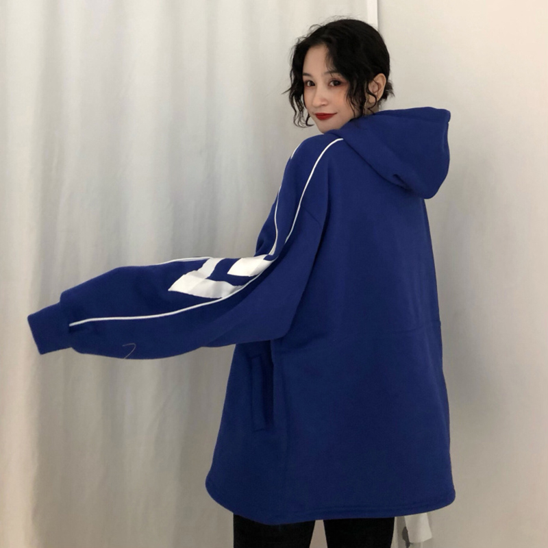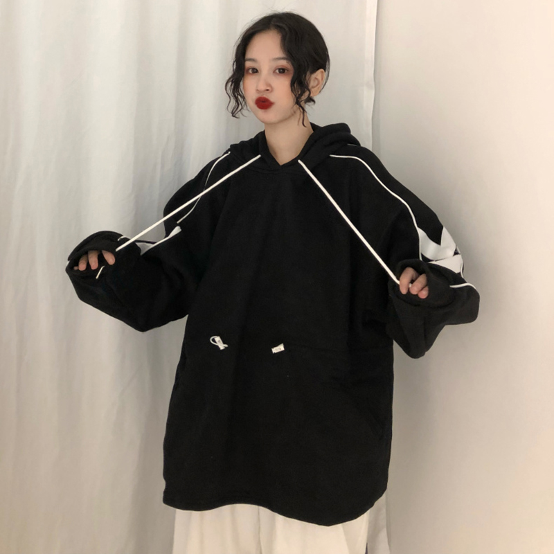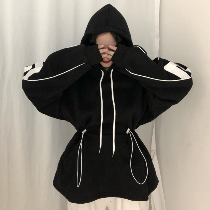 中長款加絨套頭衛衣女冬裝2018新款韓版寬松抽繩收腰顯瘦連帽外套