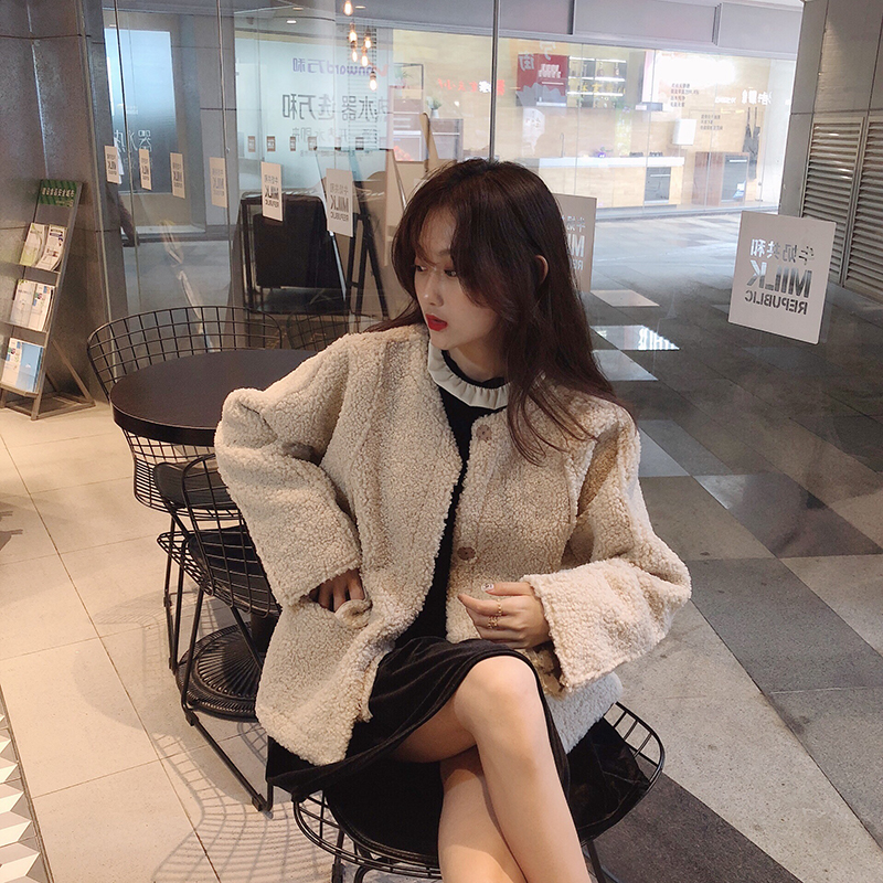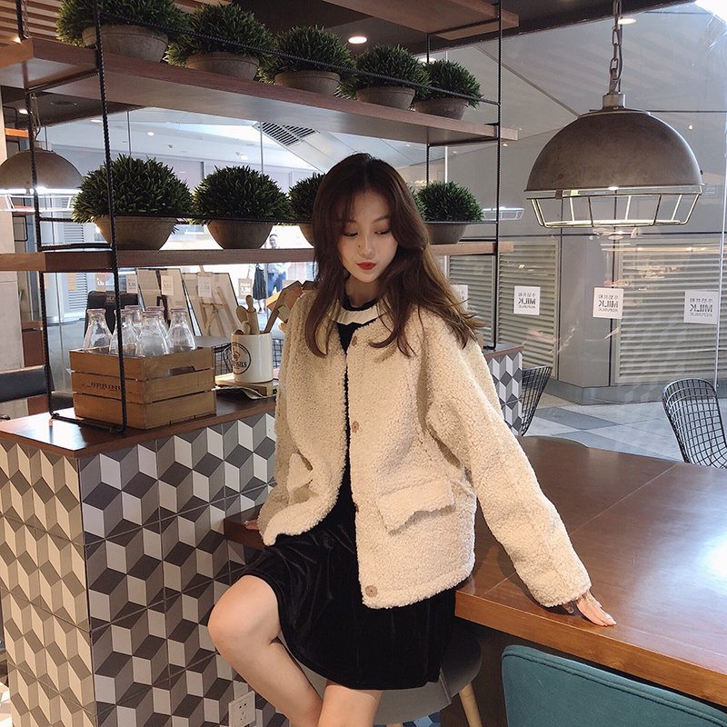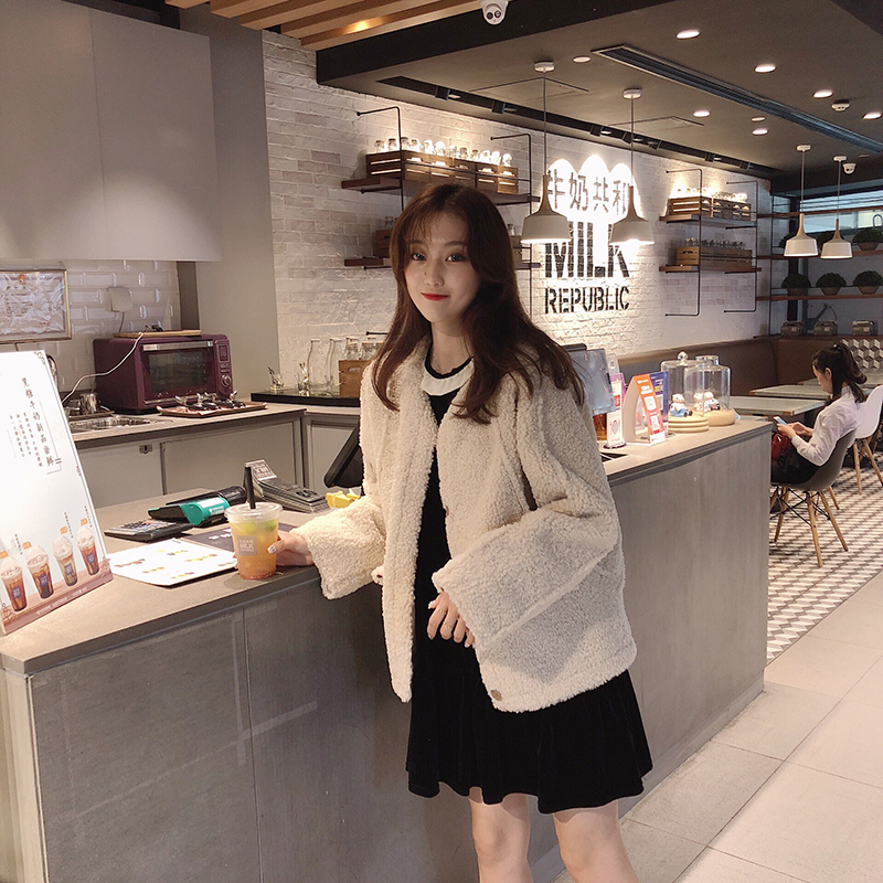 2018秋冬新款韓版短款毛茸茸毛呢外套女圈圈羊羔毛長袖大衣女上衣