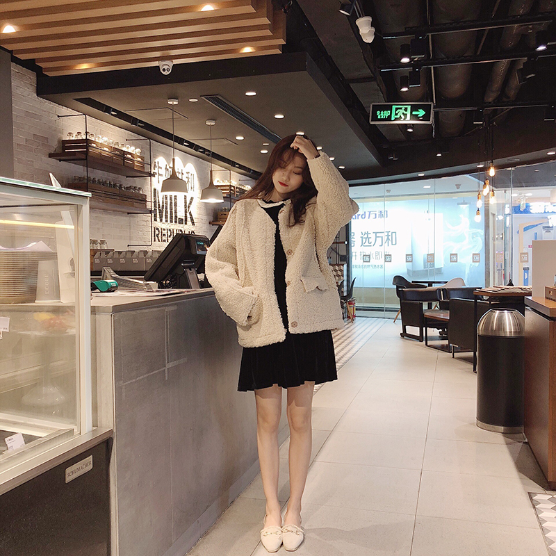 / 2018秋冬新款韓版短款毛茸茸毛呢外套女圈圈羊羔毛長袖大衣女上衣