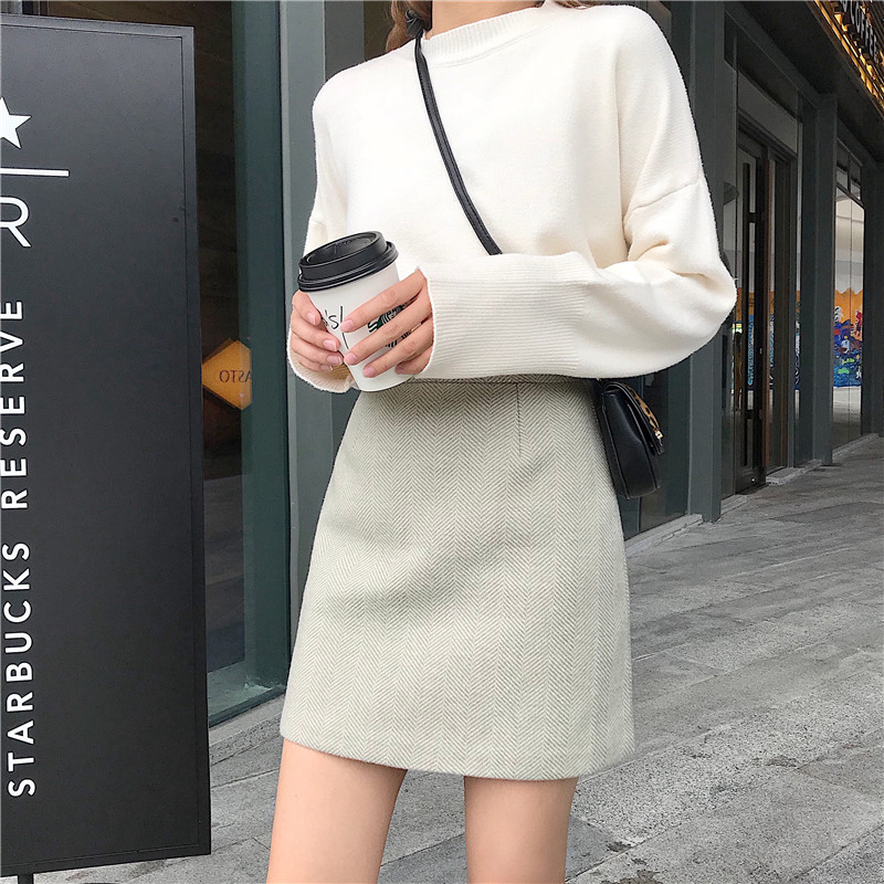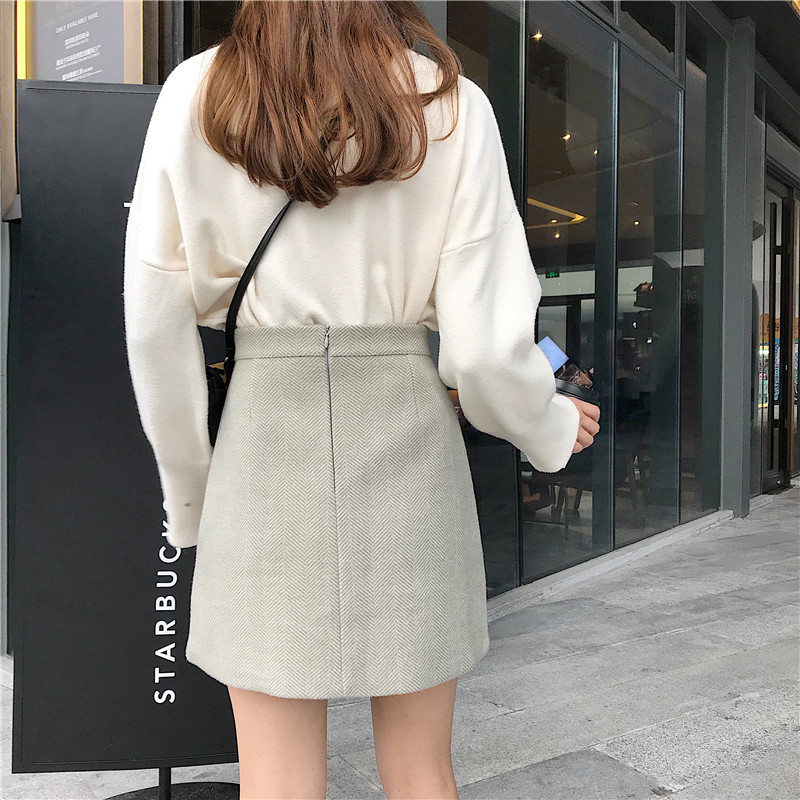 / 毛呢半身裙女秋冬裝2018新款韓版百搭A字裙氣質高腰顯瘦包臀短裙