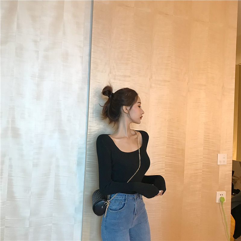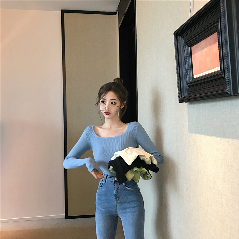 韓版針織衫女長袖秋冬2018新款韓版修身顯瘦百搭chic港味打底上衣
