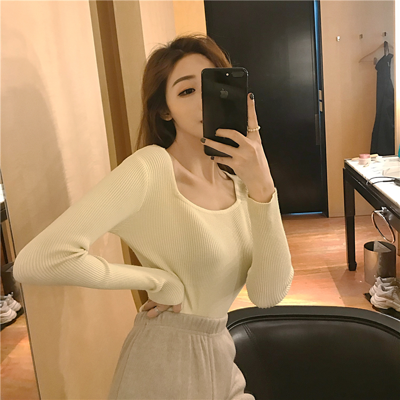 / 復古慵懶風套頭毛衣女2018新款秋加厚包芯紗氣質方領針織打底上衣