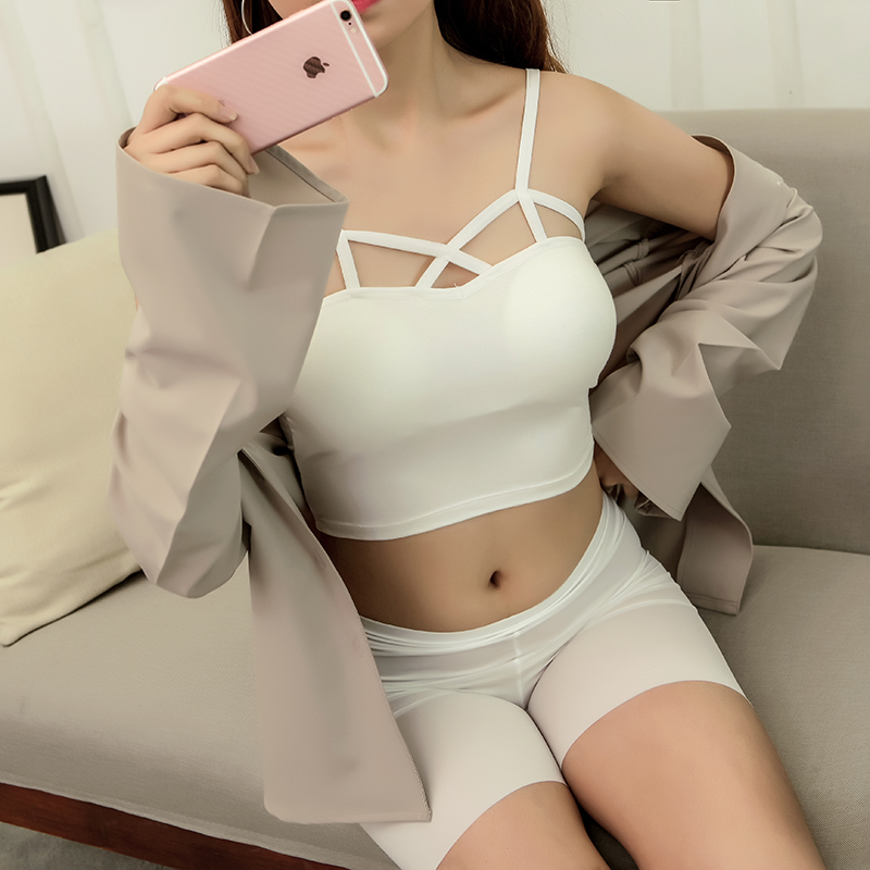/ 早春新款女裝前交叉綁帶學生短款露臍吊帶學生打底抹胸內搭小背心