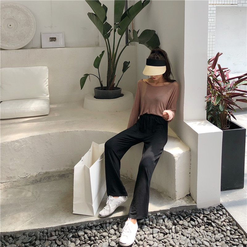 / 秋裝女2018新款潮流純色夏季顯瘦拖地薄款針織闊腿褲長褲直筒褲子